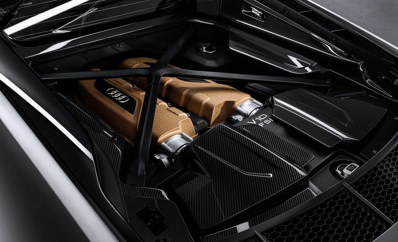 Στο χρώμα του χαλκού είναι και τα καπάκια του V10. Πρόκειται για την κορυφαία έκδοση του συνόλου των 5,200 cc, που αποδίδει 611 PS και 580 Nm, εξασφαλίζει ένα 0-100 km/h σε 3,1 sec και μια τελική ταχύτητα 331 Km/h.