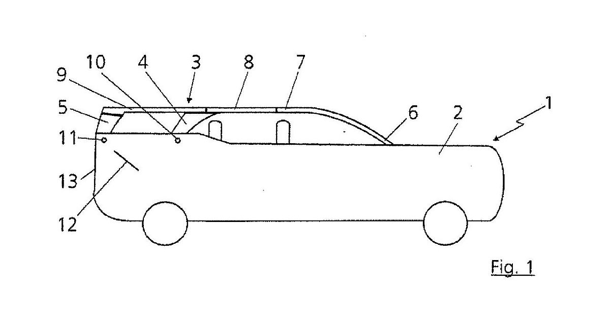 Η οποία, με βάση τα σκίτσα, προορίζεται για ένα SUV. Εδώ τo ιδιαίτερο χαρακτηριστικό της συγκεκριμένης οροφής, η οποία όταν διπλώνει «σπάει» σε 2 τμήματα, είναι η ενσωμάτωση στα τμήματα αυτά και κολώνων, που επιτρέπουν την καλύτερη εκμετάλλευση των χώρων.