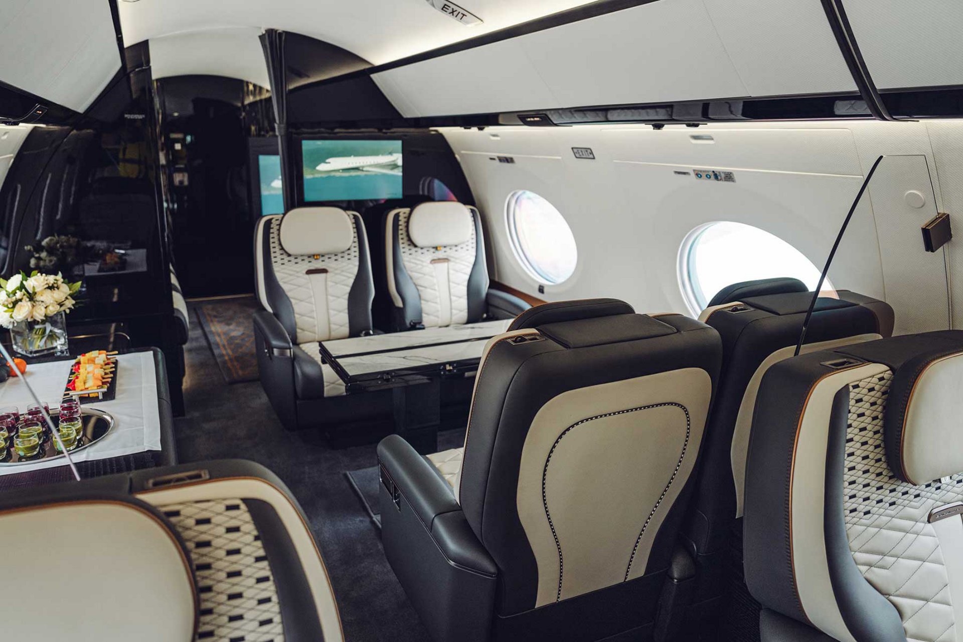 Στο εσωτερικό της καμπίνας, τα ειδικά διαμορφωμένα καθίσματα των Gulfstream G650 και Sikorsky S-76, με τις εξωτερικές ραφές και τις δερμάτινες επενδύσεις Linen και Beluga, ακολουθούν πιστά τα αντίστοιχα της Bacalar.