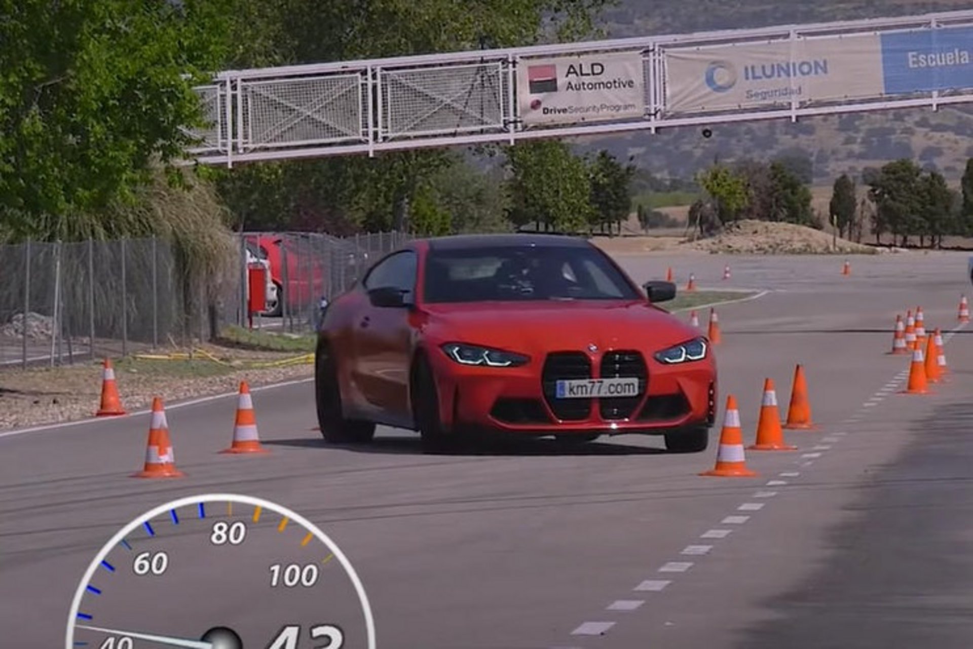Η νέα BMW M4, στα χέρια Ισπανού δοκιμαστή αυτοκινήτων του ιστότοπου km77.com, εισέρχεται στη δοκιμασία με 79 km/h, ωστόσο όταν αλλάζει πορεία προς την αντίθετη κατεύθυνση, το ESC του αυτοκινήτου δεν διατηρεί την πρόσφυση, ωθώντας το πίσω μέρος του αυτοκινήτου προς τα έξω.