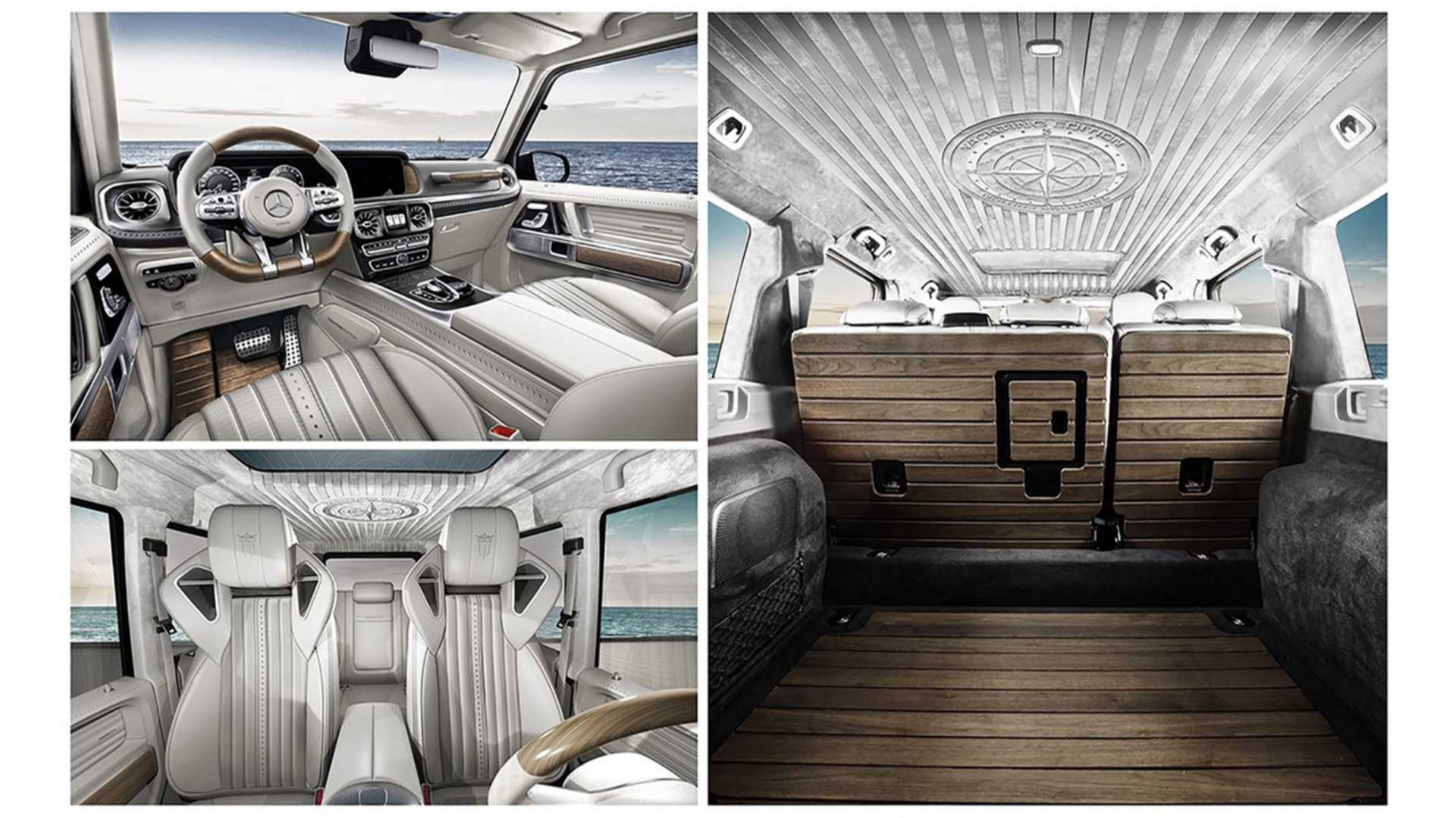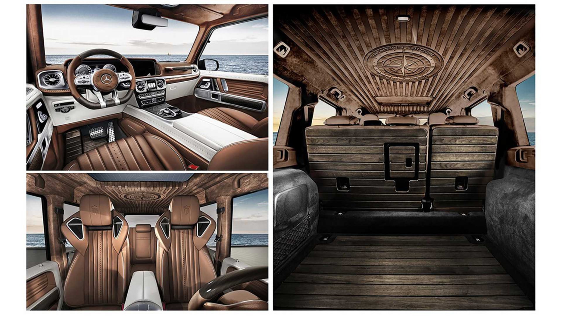 Ξύλο χρησιμοποιείται και στον ουρανό, κάτι που ισχύει και για τη δεύτερη εκδοχή όπως το περιβάλλον είναι πιο σκούρο, σε αποχρώσεις του καφέ ενώ οι λευκές επιφάνειες έχουν άλλη απόχρωση σε σχέση με αυτές της πρώτης εκδοχής. Η Carlson δεν έχει ανακοινώσει ακόμα τιμή για αυτήν την ομολογουμένως ρουστίκ Mercedes-AMG G 63, αλλά σίγουρα θα προστίθενται αρκετές χιλιάδες ευρώ στην ήδη ακριβή τιμή εκκίνησης.