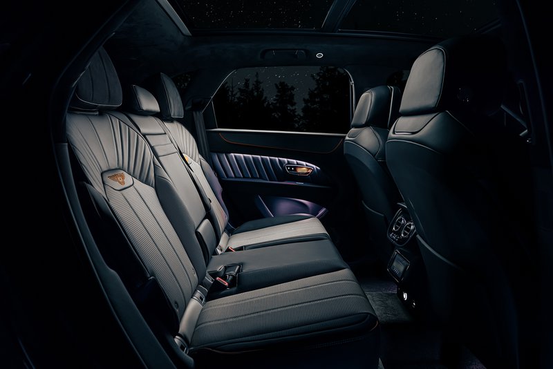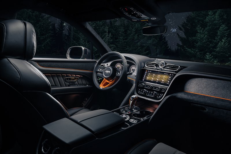 Στην καμπίνα, το πρώτο μεμονωμένο χαρακτηριστικό που αντικρύζουν οδηγός ή επιβάτες είναι τα φωτισμένα κατώφλια των θυρών που απεικονίζουν πλανήτες σε τροχιά γύρω από το ηλιακό σύστημα. Αυτά που σίγουρα εντυπωσιάζουν είναι τα πορτοκαλί πλαίσια που περιβάλλουν τις προσόψεις Galaxy Stone στο ταμπλό και στα πλαίσια των θυρών. Μοναδικές σατέν μαύρες γρίλιες ηχείων, στο κορυφαίας κατηγορίας ηχοσύστημα “Naim for Bentley”, αφήνουν να αναδειχθούν τα κεντρικά σήματα Naim, φωτισμένα σαν αστέρια τη νύχτα.
