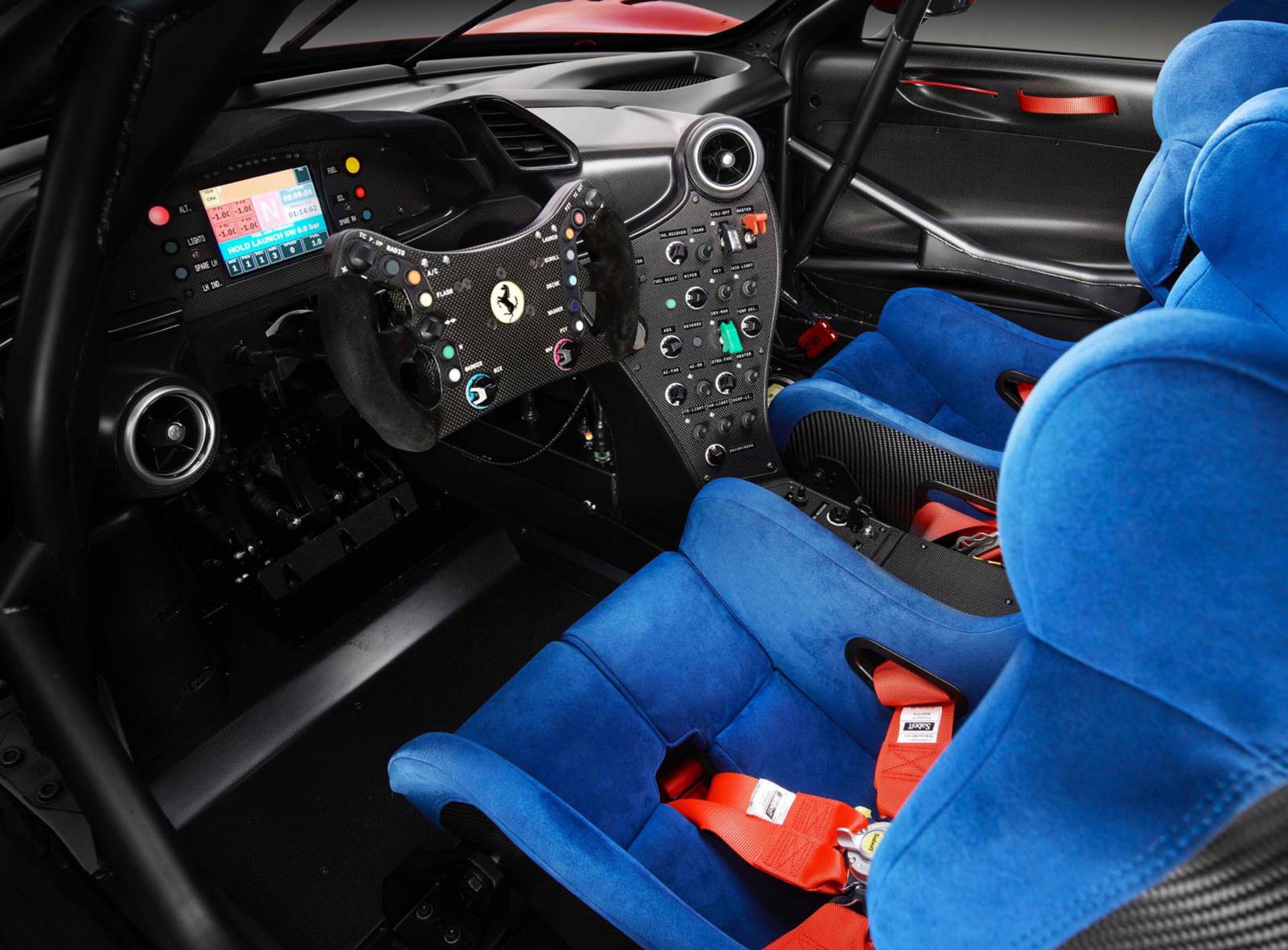 Στο εσωτερικό επικρατεί αγωνιστικός αέρας με ότι προβλέπεται και φυσικά τον κλωβό ασφαλείας. Την προσοχή αποσπούν τα μπλε μπάκετ καθίσματα με τις ζώνες τεσσάρων σημείων, η κονσόλα με τους πάμπολλους διακόπτες, το κοφτό τιμόνι αλά F1 και το ψηφιακό καντράν.