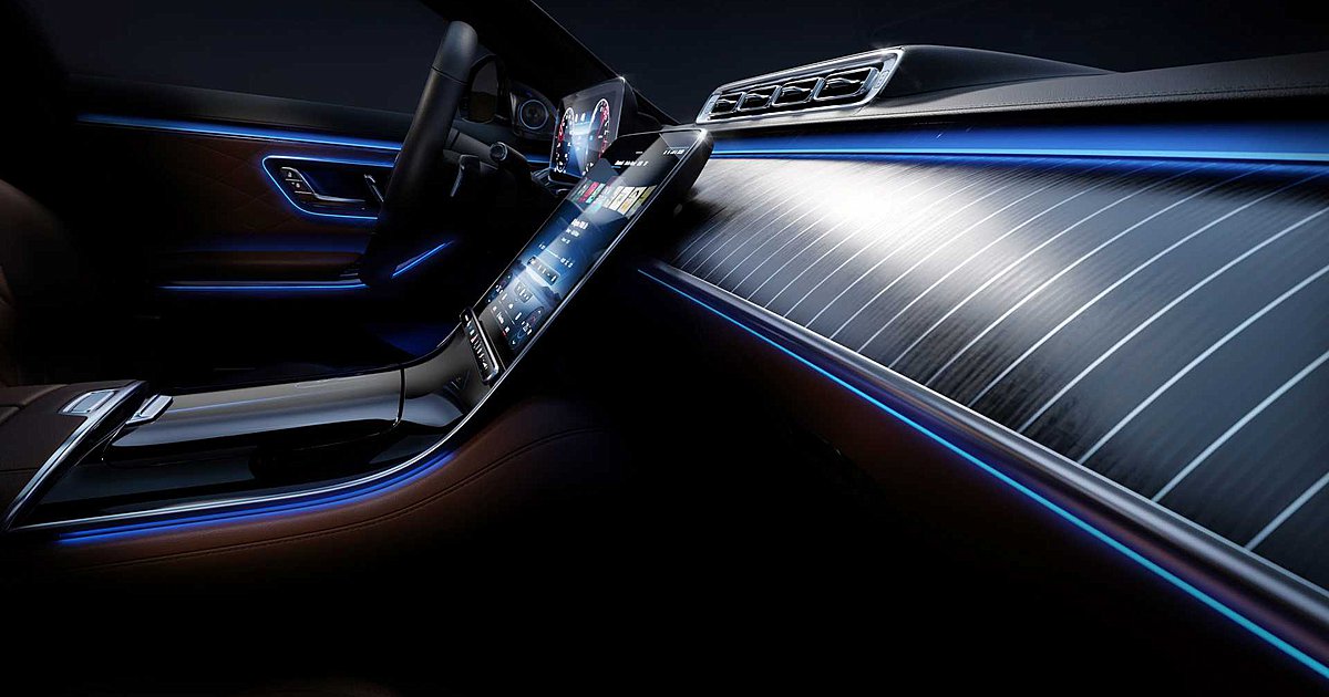 Η τεχνολογία LED επιτρέπει τον διαδραστικό φωτισμό του εσωτερικού χώρου: Ο ενεργός ατμοσφαιρικός φωτισμός έχει πλέον ενσωματωθεί στα συστήματα υποβοήθησης οδήγησης και έχει τη δυνατότητα να επισημαίνει οπτικά τις προειδοποιήσεις. Για παράδειγμα, το σύστημα υποβοήθησης νεκρής γωνίας ορατότητας Active Blind Spot Assist προειδοποιεί για επικείμενη σύγκρουση με μία κόκκινη φωτεινή κινούμενη εικόνα. Επίσης, υπάρχει η δυνατότητα ανταπόκρισης κατά τον χειρισμό του συστήματος κλιματισμού ή του φωνητικού βοηθού «Hey Mercedes».