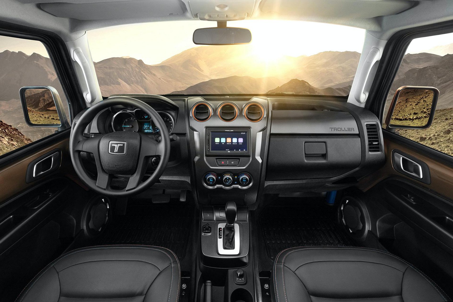 Στοιχεία εξοπλισμού όπως ο διζωνικός κλιματισμός, οι δερμάτινες επενδύσεις και το προηγμένο σύστημα ενημέρωσης και ψυχαγωγίας με την οθόνη αφής των 6,75 ιντσών επιχειρούν να καλλωπίσουν το εσωτερικό του Troller TX4, τα σχεδιαστικά χαρακτηριστικά του οποίου μαρτυρούν και τον πραγματικό χαρακτήρα του αυτοκινήτου.