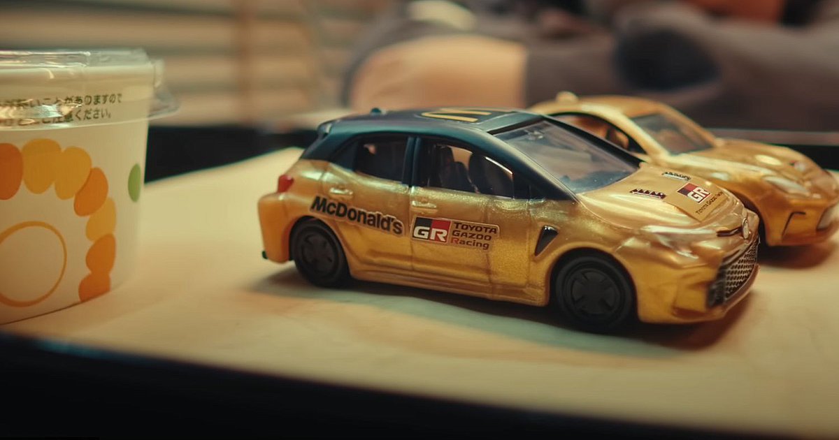 Στο πλαίσο αυτής της συνεργασίας, σε κάθε happy meal που σερβίρεται στην Ιαπωνία υπάρχει δώρο χρυσή μινιατούρα ενός εκ των Toyota GR Corolla ή GR86. Πρόκειται για ακριβή αντίγραφα των original αυτοκινήτων που το καθένα αντιπροσωπεύει το πάθος και τις ξεχωριστές ικανότητες των δύο οδηγών.