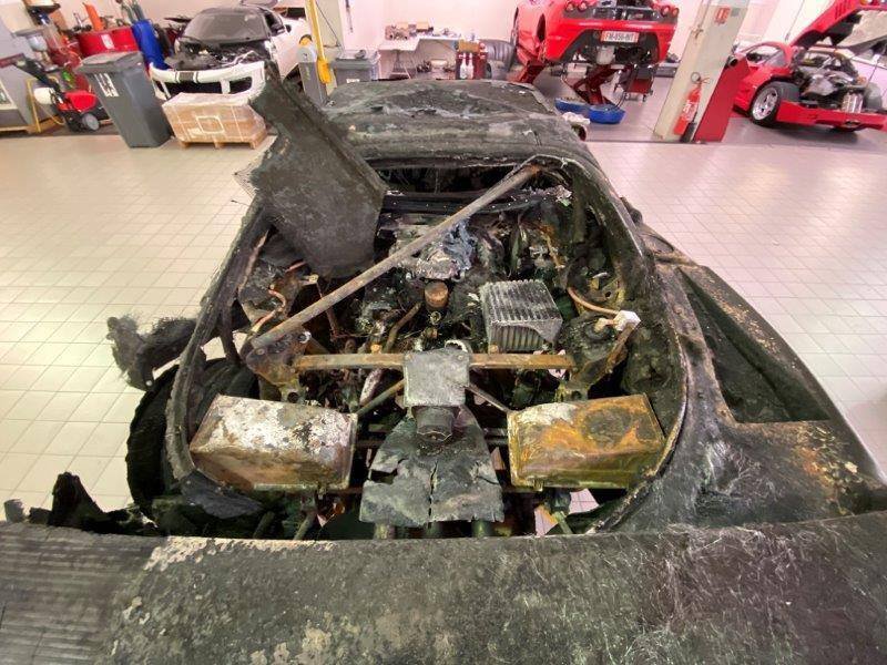 Καθώς η φωτιά ξεκίνησε από τον χώρο του κινητήρα, εκεί εντοπίζονται και οι μεγαλύτερες ζημιές. Για την ακρίβεια το πίσω τμήμα του αυτοκινήτου είναι πλήρως κατεστραμμένο σε τέτοιο βαθμό που σε κάνει να απορείς για το αν υπάρχουν πιθανότητες να επιστρέψει στη ζωή.