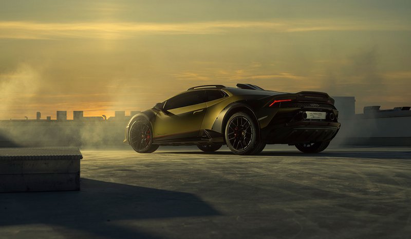Στο πίσω μέρος, ο διαχύτης έχει νέα διαμόρφωση, ενώ η αυξημένη απόσταση από το έδαφος είναι ορατή και τη διαφοροποιεί πλήρως από οποιοδήποτε άλλο supercar. Η Lamborghini έχει επίσης τοποθετήσει νέες μαύρες ζάντες με ελαστικά Bridgestone Dueler για να βελτιώσει τις δυνατότητες παντός εδάφους.