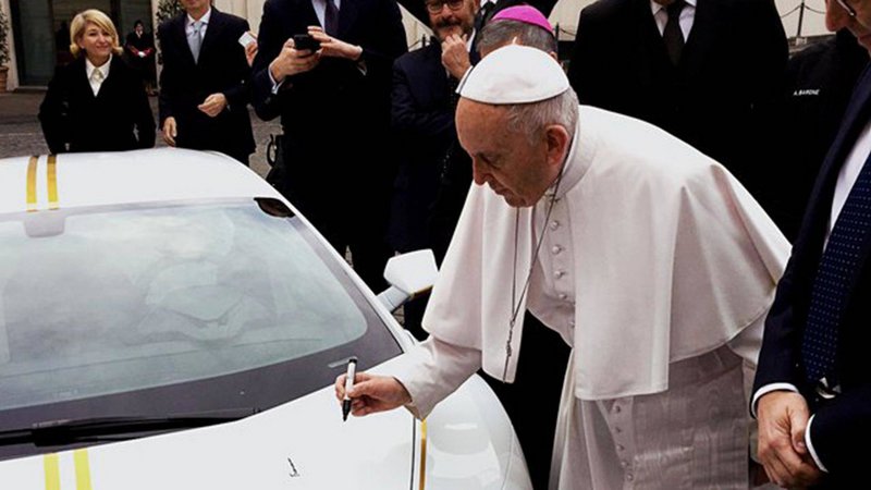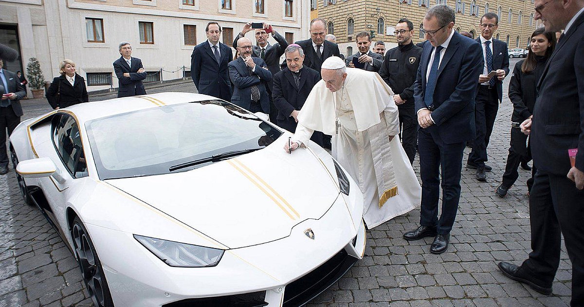 Τον περασμένο Νοέμβριο o Πάπας δέχθηκε ως δώρο μια πισωκίνητη Lamborghini Huracan. Ο Ποντίφικας ήταν δεδομένα πως δεν θα την χρησιμοποιούσε αλλά θα την διέθετε προς πώληση. Φυσικά για καλό σκοπό. Έτσι λοιπόν η άσπρη Huracan με τις χρυσές λωρίδες γύρω από τα παράθυρα, που είχε διαμορφωθεί από το τμήμα εξατομίκευσης της Lamborghini έτσι ώστε να παραπέμπει στη σημαία του Βατικανό.