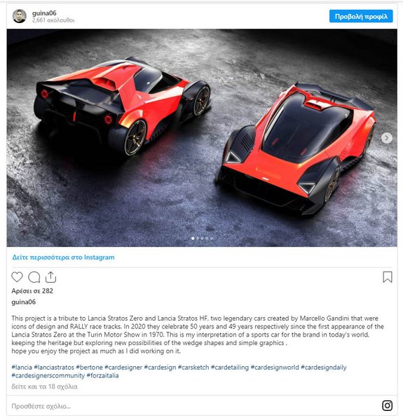 Μια επιστροφή που στη νεότερη εποχή θα μπορούσε να συνδυαστεί με προηγμένα σχήματα έχοντας ως βάση ευέλικτες πλατφόρμες με ηλεκτρικά συστήματα πρόωσης. Κάτι τέτοιο φαντάστηκε και ο χρήστης στο Instagram που ανέβασε μια συμπαγής προσέγγιση της εμβληματικής Stratos ως ένα supercar.