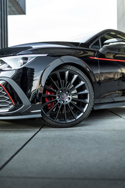 Η Manhart έχει εγκαταστήσει ένα νέο διαχύτη στο πίσω μέρος και ζάντες αλουμινίου 8 ακτίνων διάστασης 19 ιντσών με ελαστικά 225/35, καθώς και ελατήρια H&R που έχουν χαμηλώσει το Golf GTI κατά 40 χιλιοστά.