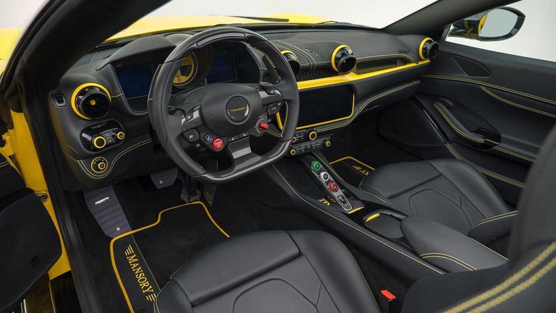 Το εσωτερικό, είναι επενδεδυμένο με μαύρου χρώματος δέρμα στο οποίο διακρίνονται οι κίτρινες ραφές, όπως και οι ίδιας απόχρωσης διακόπτες και κάλυμμα στο ταμπλώ. Στο τιμόνι, όπως και στο αμάξωμα, το έμβλημα του «Cavallino Rampante» έχει αντικατασταθεί από το εμπορικό σήμα της Mansory, αλλά έχουν διατηρηθεί τα χρώματα της ιταλικής σημαίας στους διακόπτες για το αυτόματο κιβώτιο επτά σχέσεων.