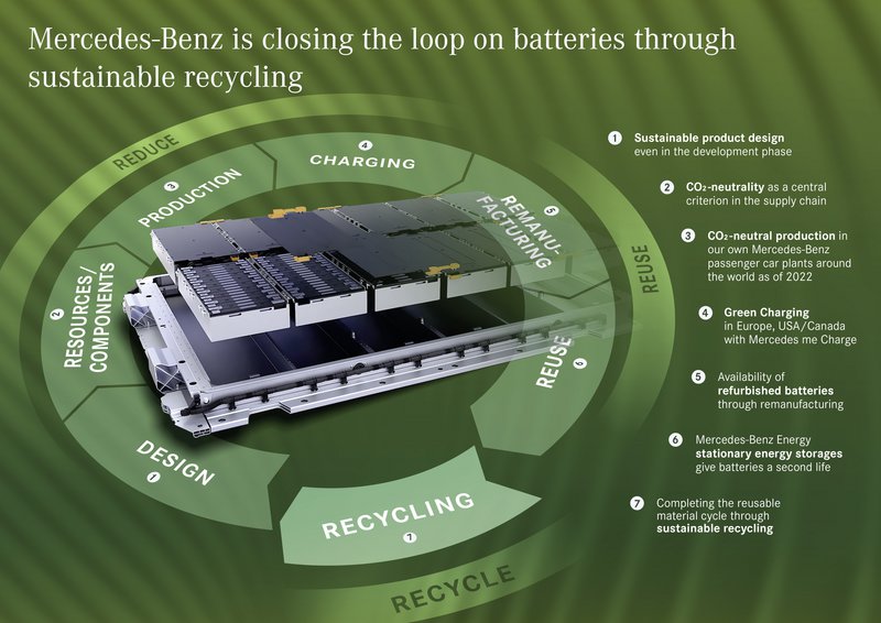 Ο Jörg Burzer, ο Υπεύθυνος του Τμήματος Διαχείρισης Παραγωγής και Εφοδιαστικής Αλυσίδας της Mercedes, δήλωσε σχετικά: «Η Mercedes-Benz επιδιώκει έναν σαφή στόχο με σκοπό τη διατήρηση των πόρων: μια μέγιστη κυκλική οικονομία για όλες τις πρώτες ύλες που χρησιμοποιούνται. Η βιώσιμη ανακύκλωση μπαταριών είναι βασικός παράγοντας σε αυτό τον στόχο παγκοσμίως».