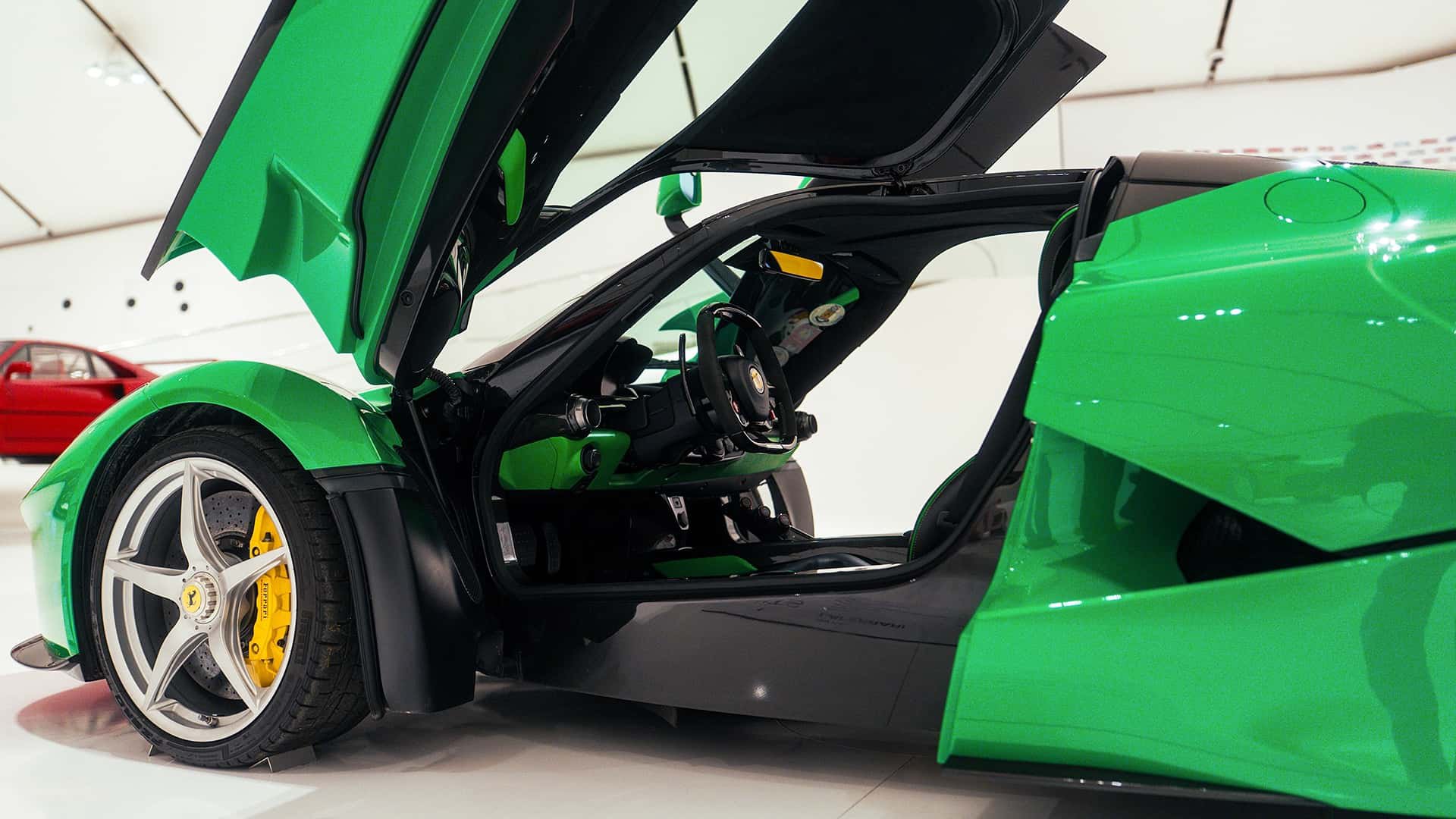 Η συγκεκριμένη LaFerrari του 2014 είναι η μοναδική από τις 499 που κατασκευάστηκαν με την απόχρωση “Signal Green”, μια επιλογή που έκανε προσωπικά ο Jay Kay, ο γνωστός τραγουδιστής και ιδρυτής του συγκροτήματος Jamiroquai.
