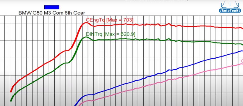 Σε συνθήκες, λοιπόν, οι οποίες δεν απέχουν σημαντικά από τις πραγματικές, η νέα BMW M3 Competition έφτασε τους 546,5 ίππους με τη μέγιστη τιμή της ροπής να αγγίζει τα 703 Nm.