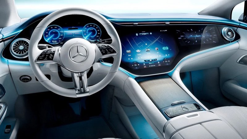 Επιπλέον, η EQE 43 4MATIC μπορεί προαιρετικά να εξοπλιστεί με την πρωτοποριακή Hyperscreen MBUX. Η μεγάλη, καμπύλη οθόνη του εκτείνεται από τη μία άκρη της κολώνας Α έως την άλλη.