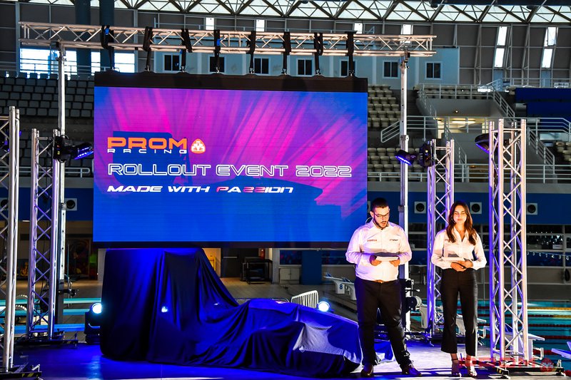 Η συνεργασία της Prom Racing με το Ο.Α.Κ.Α. είχε ξεκινήσει στις 5 Φεβρουαρίου, όποτε και το πρώτο ηλεκτρικό αγωνιστικό αυτοκίνητο της ομάδας, το P20, διέσχισε μια ειδικά διαμορφωμένη διαδρομή κάτω από τις αψίδες της «Αγοράς». Για την αποκάλυψη του P22, όμως, επιλέχθηκε μια διαφορετική και πρόσφατα ανακαινισμένη εγκατάσταση του Ολυμπιακού Συγκροτήματος, το Κλειστό Κολυμβητήριο. «Πρόκειται για έναν χώρο που, ενώ φαίνεται να μην ταιριάζει με την αγωνιστική ταυτότητα της ομάδας, δημιουργεί μια δυναμική ισορροπία μεταξύ του υγρού στοιχείου και του Μηχανοκίνητου Αθλητισμού» δήλωσε ο Κωνσταντίνος Αλεξόπουλος, Υπεύθυνος Marketing της Prom Racing.