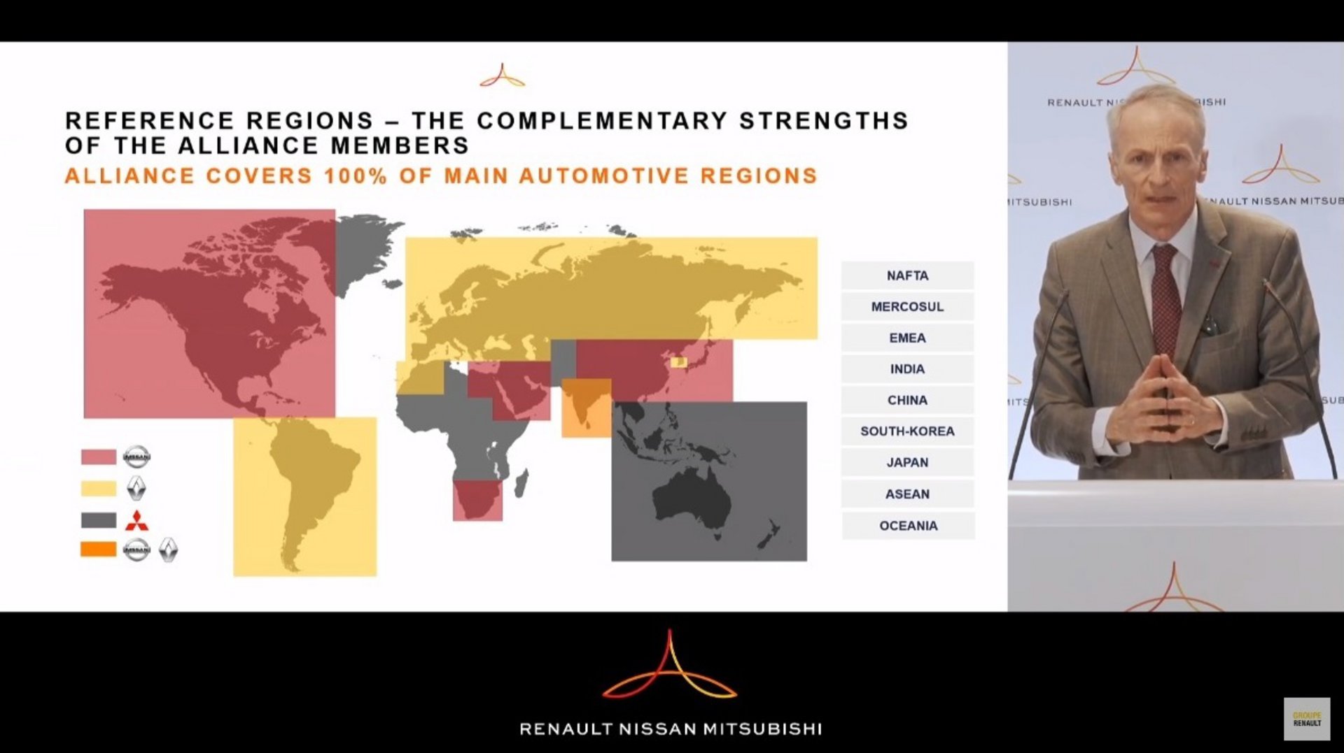 Η ίδια φιλοσοφία leader/follower θα επεκταθεί και σε επίπεδο περιοχής. Τη στρατηγική σε κάθε αγορά θα την ορίζει η εταιρία που έχει μεγαλύτερη συνάφεια με αυτή. Για την Ευρώπη και τη νότιο Αμερική, τον πρώτο λόγο θα έχει η Renault. Στη βόρειο Αμερική, Ιαπωνία και Κίνα, θα είναι η Nissan, ενώ στο μεγαλύτερο μέρος της Αφρικής και στην Αυστραλία, επί κεφαλής θα βρίσκεται η Mitsubishi.