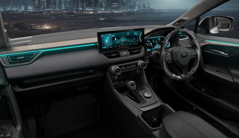 Ξεκινώντας από το RAV4 Dark Side Performance concept (κεντρική φωτό), η Toyota αναφέρει ότι έχει αντλήσει έμπνευση από τις ταινίες και τα βιντεοπαιχνίδια επιστημονικής φαντασίας και τα anime. Το μπροστινό μέρος έχει επανασχεδιαστεί και μοιάζει αρκετά με εκείνο ενός ηλεκτρικού μοντέλου, με την εταιρεία να τοποθετεί μια κλειστή γρίλια που φέρει έναν κωδικό QR, κάποια γεωμετρικά σχήματα και το σήμα της Toyota σε μικρό μέγεθος στην κάτω γωνία.