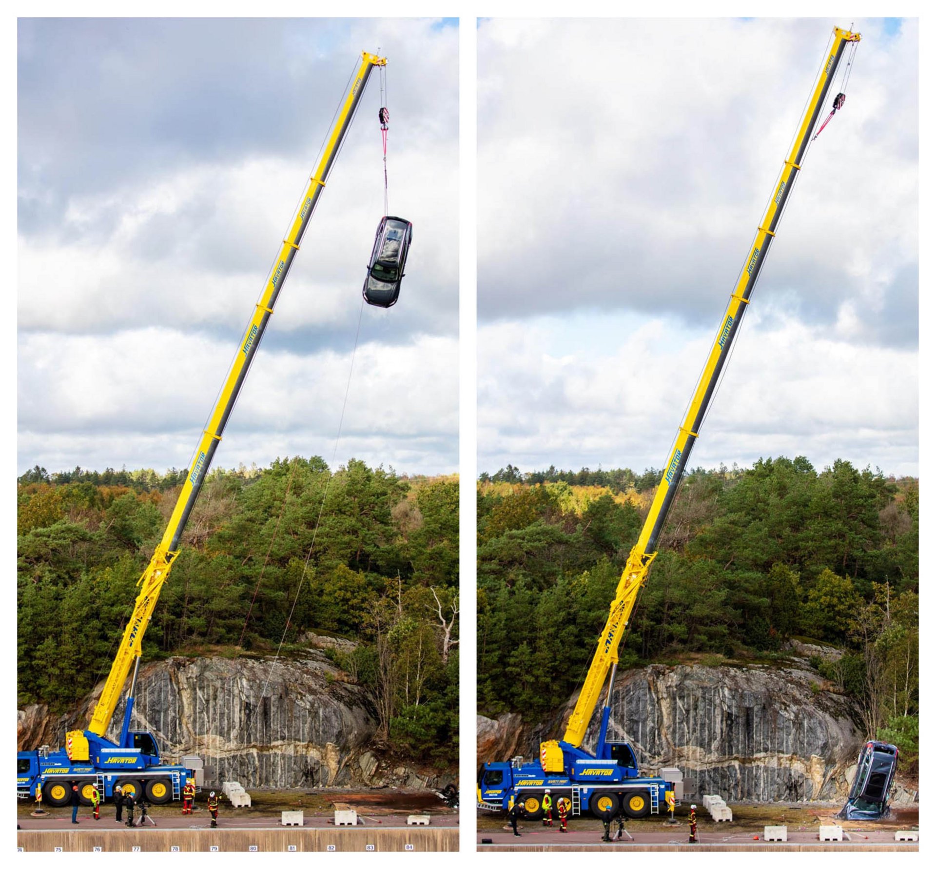 «Συνήθως συντρίβουμε αυτοκίνητα στο εργαστήριο και ήταν η πρώτη φορά που τα πετάξαμε από γερανό», λέει ο ειδικός της Volvo, Hakan Gustafson. «Γνωρίζαμε ότι θα δούμε ακραίες παραμορφώσεις μετά το crash test και αυτό θέλαμε ώστε να δώσουμε στην ομάδα διάσωσης μια πραγματική πρόκληση».