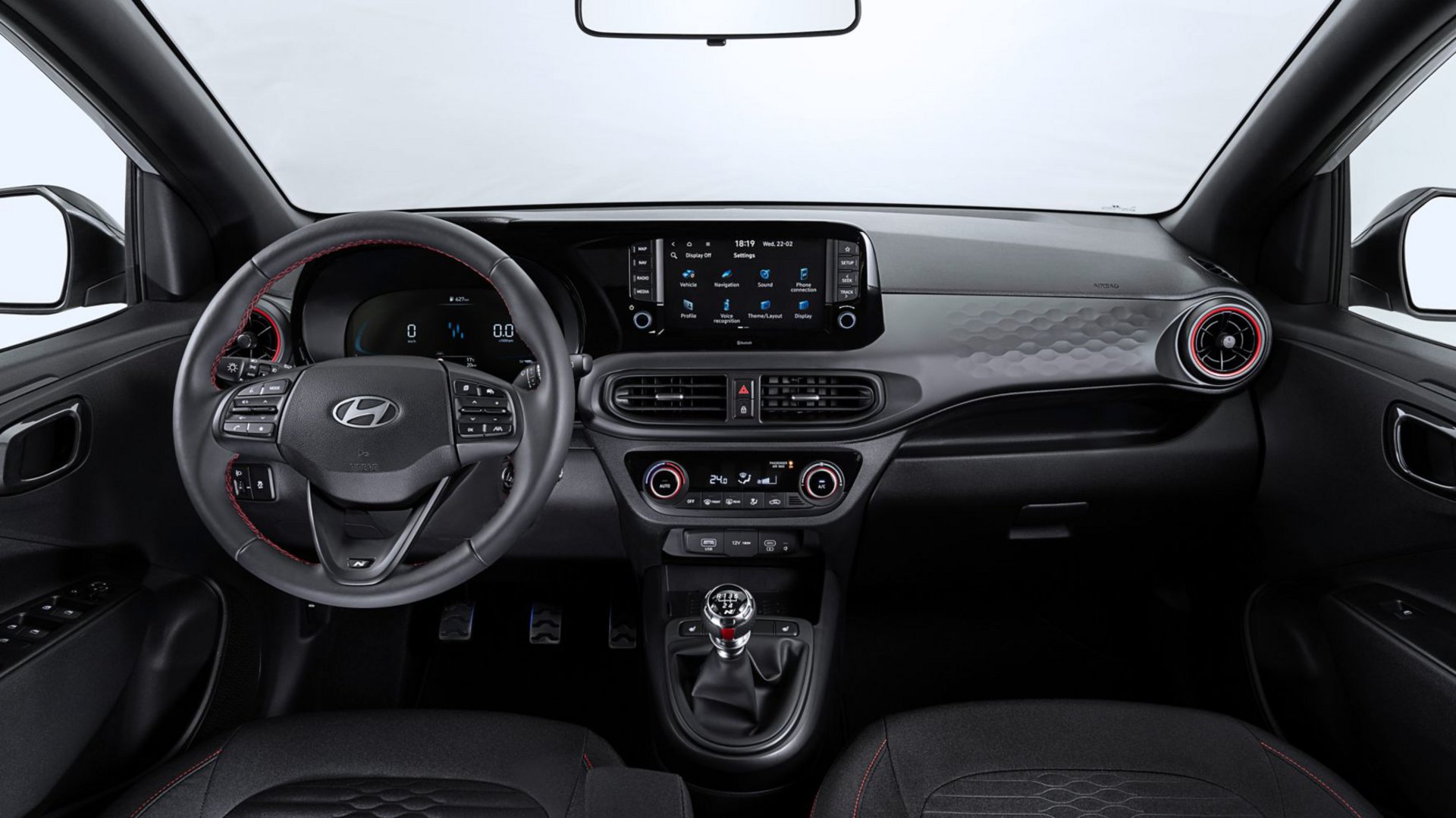 Όσο για το εσωτερικό, η Hyundai έχει προσφέρει στο νέο i10, μπλε φωτισμό στα μπροστινά καθίσματα και ένα νέο στυλιστικό πακέτο με μωβ λεπτομέρειες στα καθίσματα, τις ραφές και τον εξαερισμό.