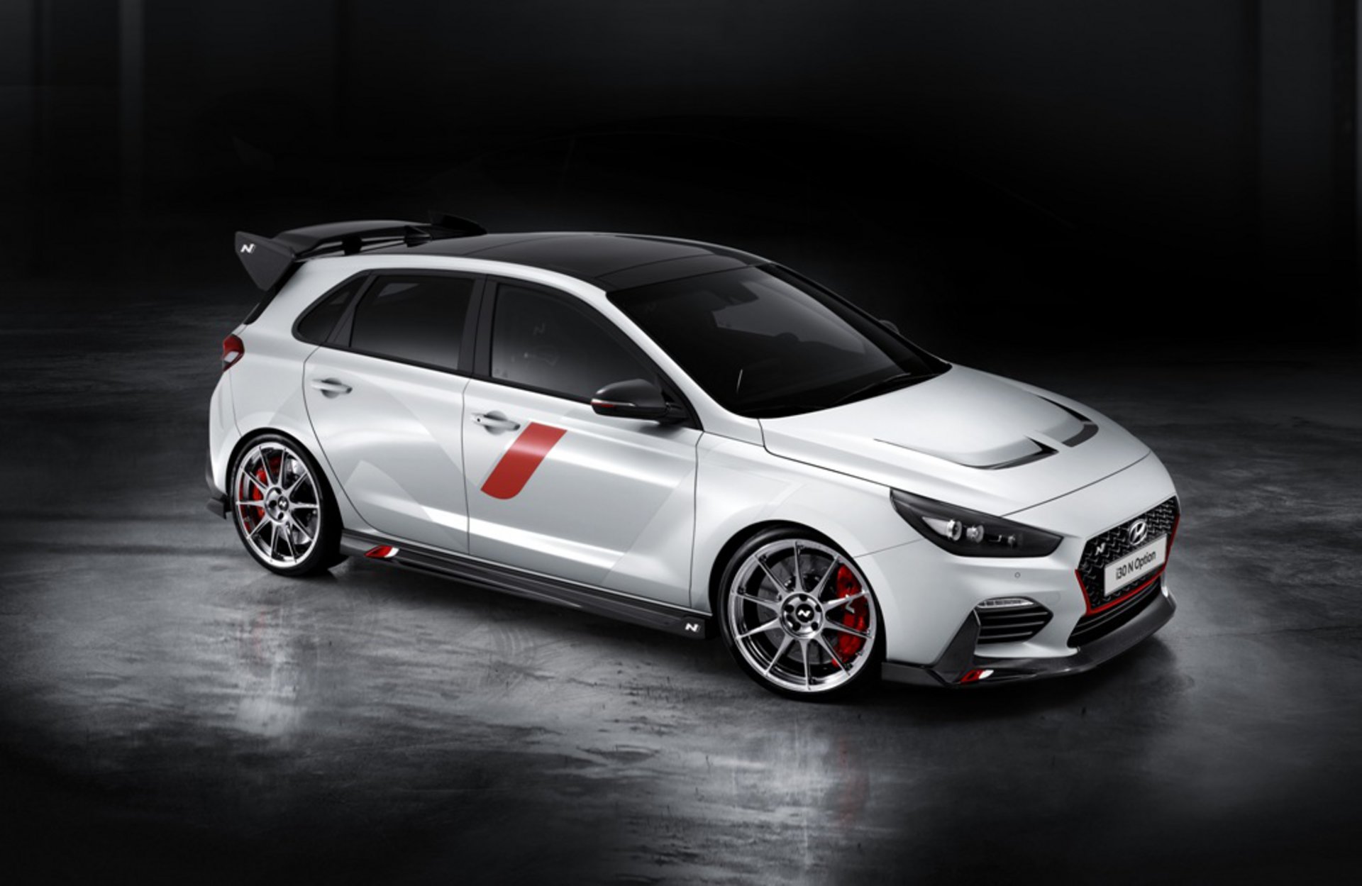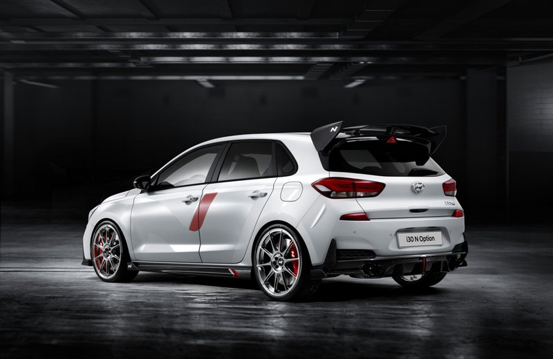 Το Hyundai i30 N Option παρουσιάζει συνολικά 25 κατασκευαστικά μέρη, τα οποία έρχονται να υπογραμμίσουν με δυναμικό στιλ τις Performance δυνατότητες του κορεατικού αυτοκινήτου. Στην ουσία πρόκειται από τη μία πλευρά για αεροδυναμικά βοηθήματα: Μία τροποποιημένη μπροστινή ποδιά, ένας πίσω προφυλακτήρας με αεροδυναμικό διαχύτη και μία τεράστιων διαστάσεων πίσω αεροτομή δίνουν στο i30 N μία σαφώς πιο επιθετική εμφάνιση. Εντύπωση προκαλεί επίσης το καπό του κινητήρα με τις εντυπωσιακές εξαγωγές αέρα και το οποίο διαφοροποιεί έντονα την εμφάνιση του Option σε σχέση με την έκδοση, που είναι ήδη γνωστή. Σημειωτέον πως το αυτοκίνητο, που εμφανίστηκε στο Παρίσι, εφοδιαζόταν με ζάντες 20 in και σπορ ελαστικά, ενώ στο i30 N παραγωγής τοποθετούνται ελαστικά 18 ή 19 in.