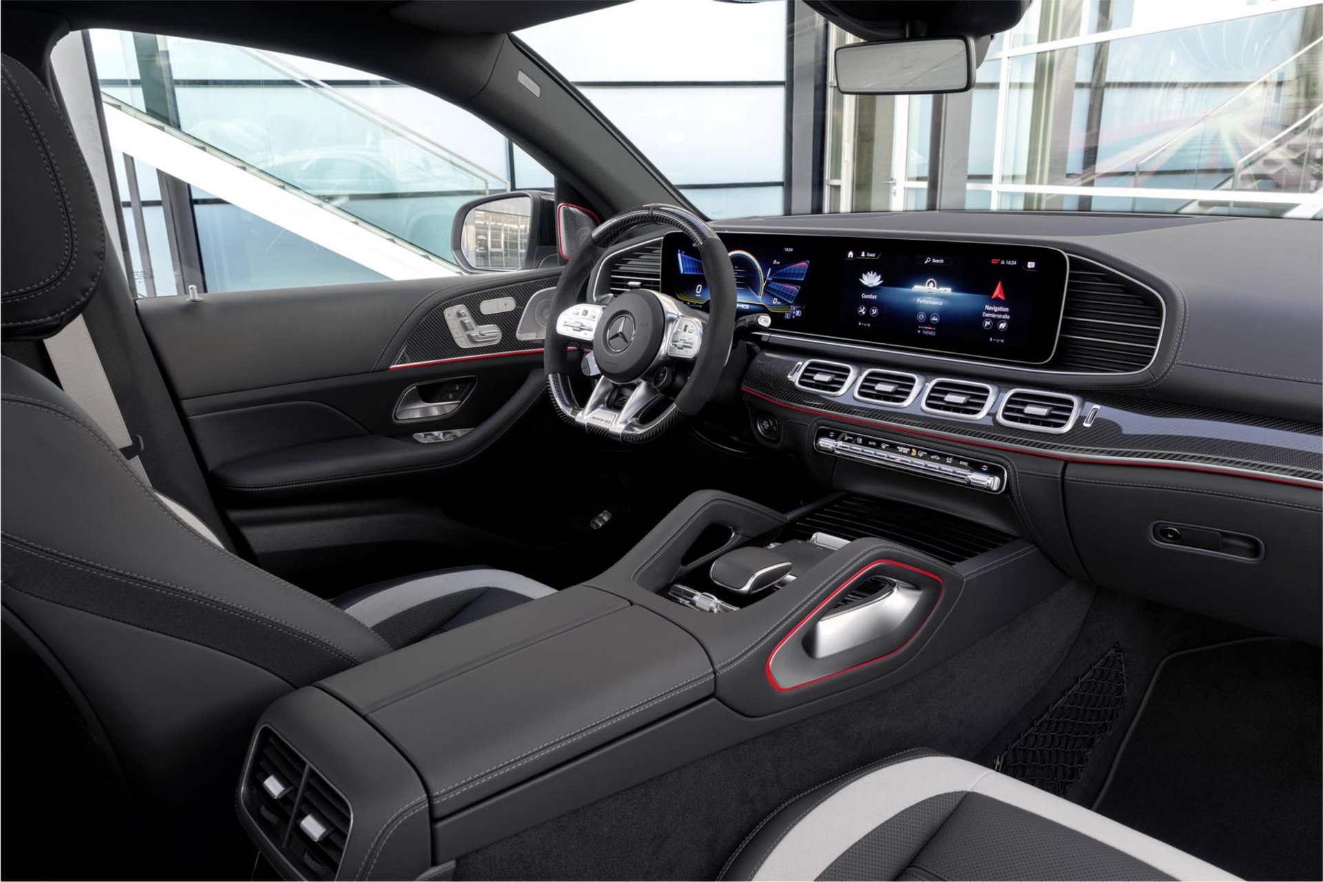 Το βλέμμα επικεντρώνονται στο όλο εμφατικό πακέτο με τις αεροδυναμικές βελτιώσεις, τις μαύρες λεπτομέρειες και τον πίσω διαχύτη, τους τροχούς 21 ιντσών (υπάρχου και 22 προαιρετικά), τις κόκκινες δαγκάνες των φρένων και όλα τα γλυκάδια που περιλαμβάνει η AMG αμφίεση. Στο εσωτερικό είναι επίσης διάχυτη η AMG αύρα με τα κόκκινα σιρίτια και τις αλουμινένιες διακοσμήσεις να υπερθεματίζουν τον δυναμικό και υπερσύγχρονο διάκοσμο.