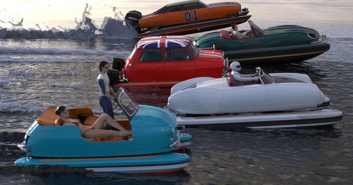 Η ιδέα είναι εκκεντρική. Όπως και ο άνθρωπος που τη συνέλαβε, ο Ιταλός σχεδιαστής Pierpaolo Lazzarini ο οποίος θέλησε να συνδυάσει δύο μεγάλες του αγάπες: τα αυτοκίνητα και τα σκάφη θαλάσσης. Το project φέρει την ονομασία «Floating Motors» και αυτό που κάνει είναι να μετατρέπει κλασικά μοντέλα, όπως Mini Cooper, Jaguar XKE ή FIAT 500σε πλωτά μέσα.