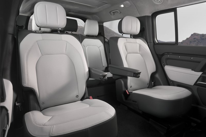 Στο εσωτερικό και πιο συγκεκριμένα στην επταθέσια έκδοση Defender 130 με τις τρεις σειρές καθισμάτων έχουν προστεθεί καθίσματα Captain. Η μεσαία σειρά έχει αφαιρεθεί και στη θέση της έχουν τοποθετηθεί δύο ξεχωριστές θέσεις με κενό ανάμεσα, ώστε να υπάρχει πρόσβαση στην πίσω σειρά. Σύμφωνα με τη Land Rover, αυτή η προσθήκη προσφέρει «την άνεση των μπροστινών καθισμάτων» στους επιβάτες που κάθονται στη μεσαία σειρά. Τα Captain καθίσματα είναι διαθέσιμα αποκλειστικά στα Defender X και V8.