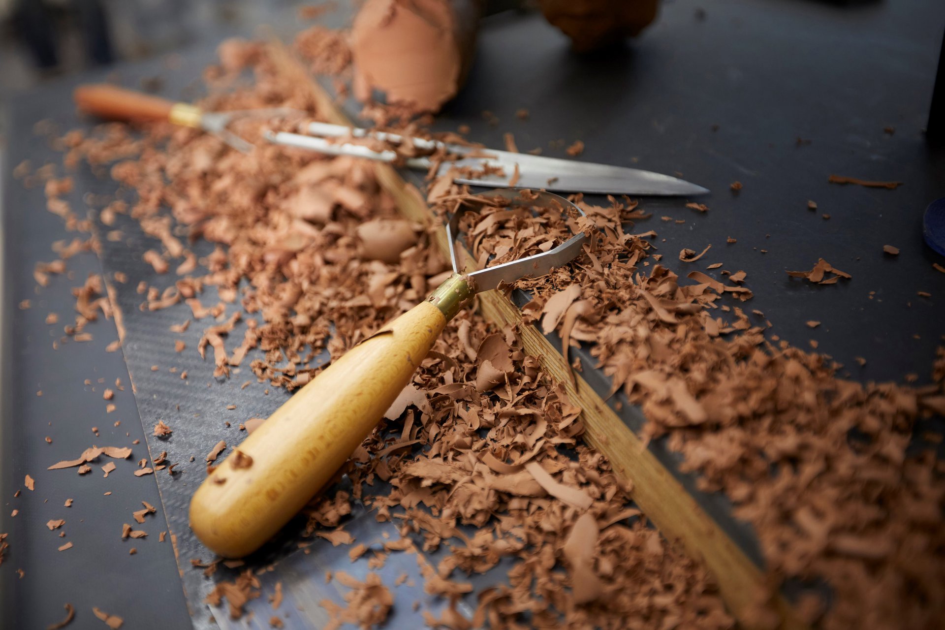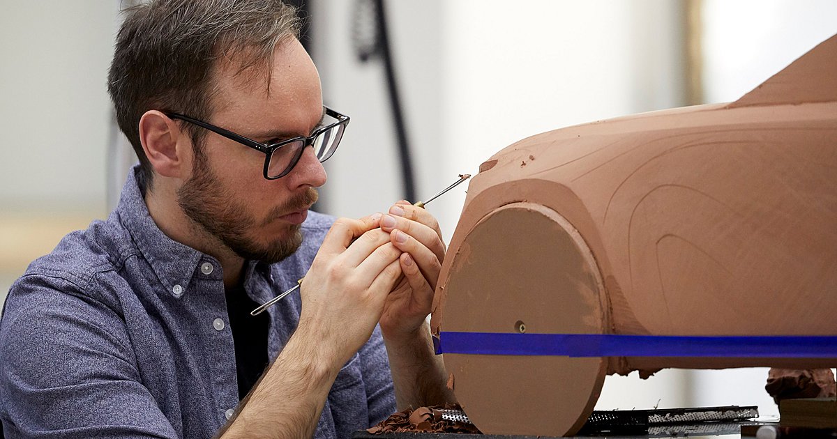 - Ο μοντελιστής θερμαίνει πρώτα τον πηλό, ένα ειδικό μείγμα κεριού, λαδιού, χρωστικής και υλικού πλήρωσης, στους 60°C. Το εύπλαστο υλικό στη συνέχεια εφαρμόζεται στο πλαίσιο στήριξης πριν διαμορφωθεί και πάρει το σχήμα ενός αυτοκινήτου. Η δουλειά πάνω στον πηλό γίνεται με το χέρι, μεταφέροντας ενέργεια και συναίσθημα σε κάθε πτυχή της επιφάνειας.