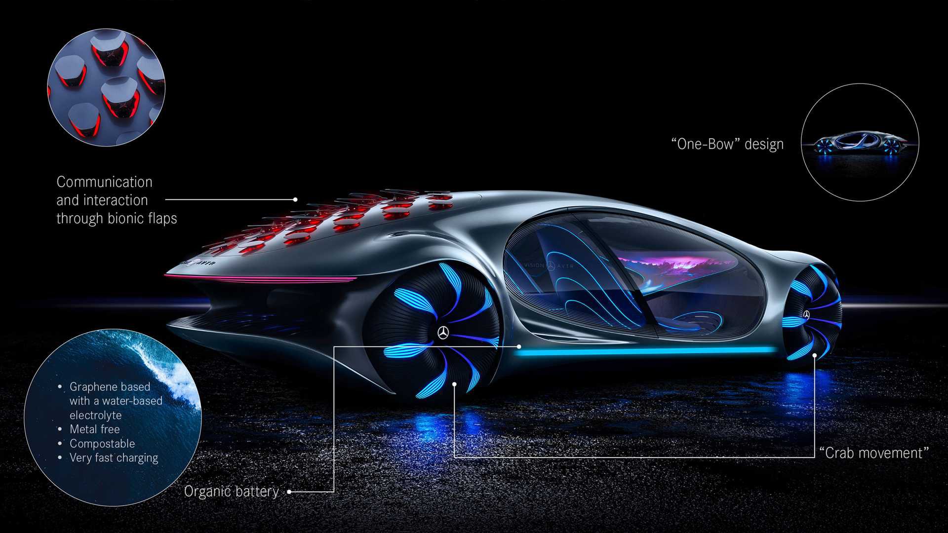 Το AVTR Vision της Mercedes-Benz διαθέτει μεταξύ άλλων και 33 ενεργά πτερύγια τα οποία βελτιστοποιούν τις αεροδυναμικές επιδόσεις του αμαξώματος, ενώ υιοθετεί και τις πλέον βιώσιμες πρακτικές, επιλέγοντας ανακυκλωμένα και φιλικά προς το περιβάλλον υλικά για την κατασκευή των επιφανειών του εσωτερικού του.