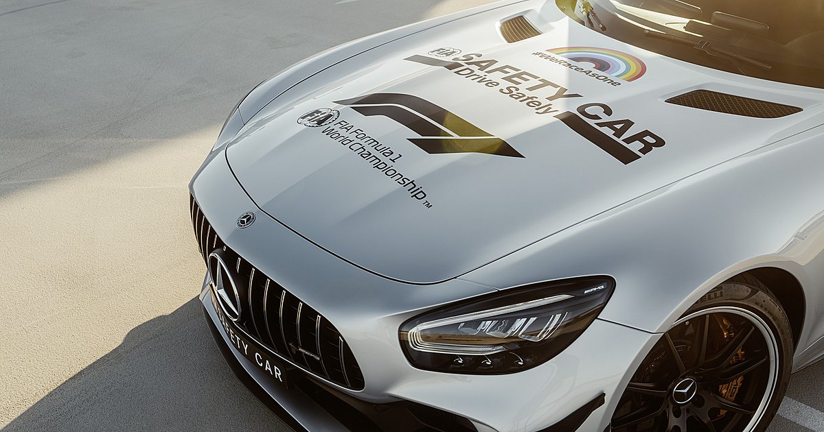 Το φετινό Safety Car δεν είναι άλλο από μία AMG GT R, ειδικά προετοιμασμένη για το συγκεκριμένο σκοπό. Αυτό που προκαλεί εντύπωση, ωστόσο, δεν είναι οι τεχνικές προδιαγραφές της αλλά ο χρωματισμός που έχει επιλεγεί για το αμάξωμα. Σε αντιστοιχία με τη νέα καμπάνια της Formula 1 «WeRaceAsOne», το αυτοκίνητο έχει σχεδιασμένο ένα ουράνιο τόξο στις πλευρές και στο καπό του. Αυτό συμβολίζει την αθλητική δέσμευση για διαφορετικότητα και αποδοχή.
