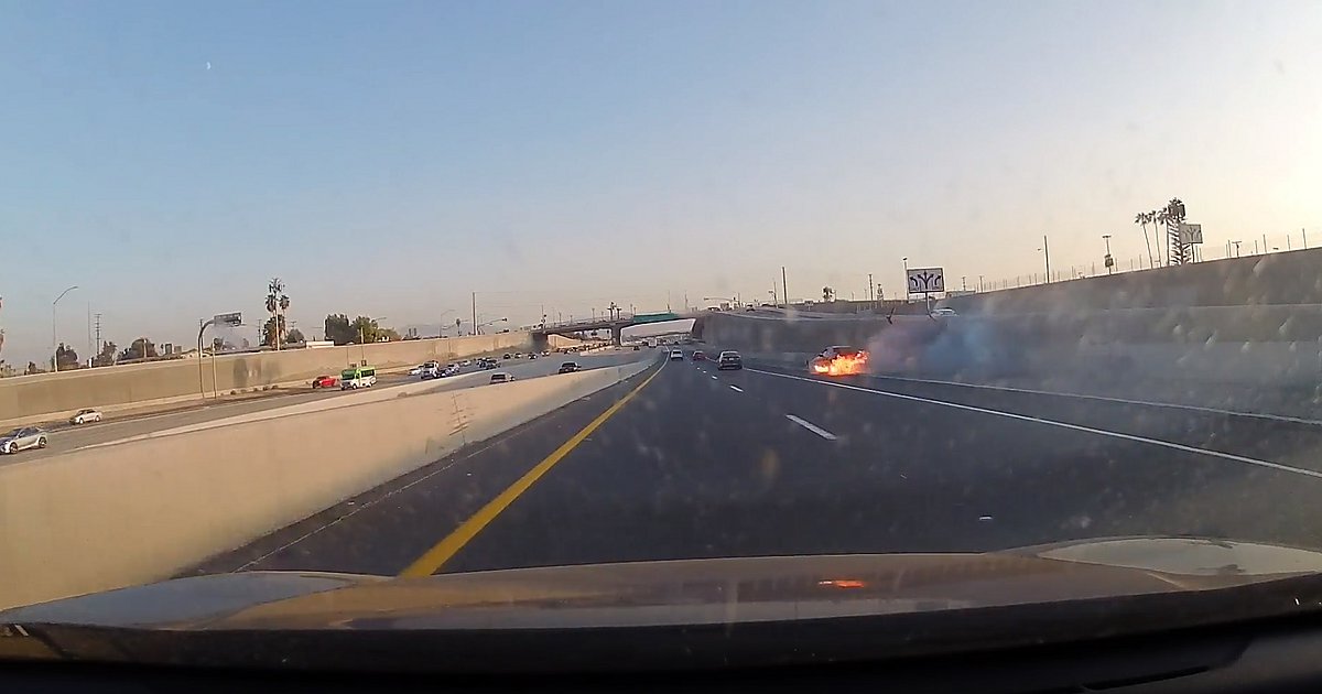 Η ιστορία, βέβαια, είχε και συνέχεια, μια και από τη σφοδρότητα της σύγκρουσης, η κόκκινη Mercedes-Benz C-Class τυλίχθηκε στις φλόγες με αποτέλεσμα να καταστραφεί ολοσχερώς.