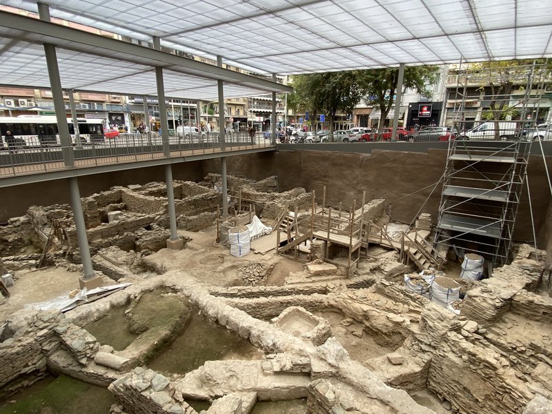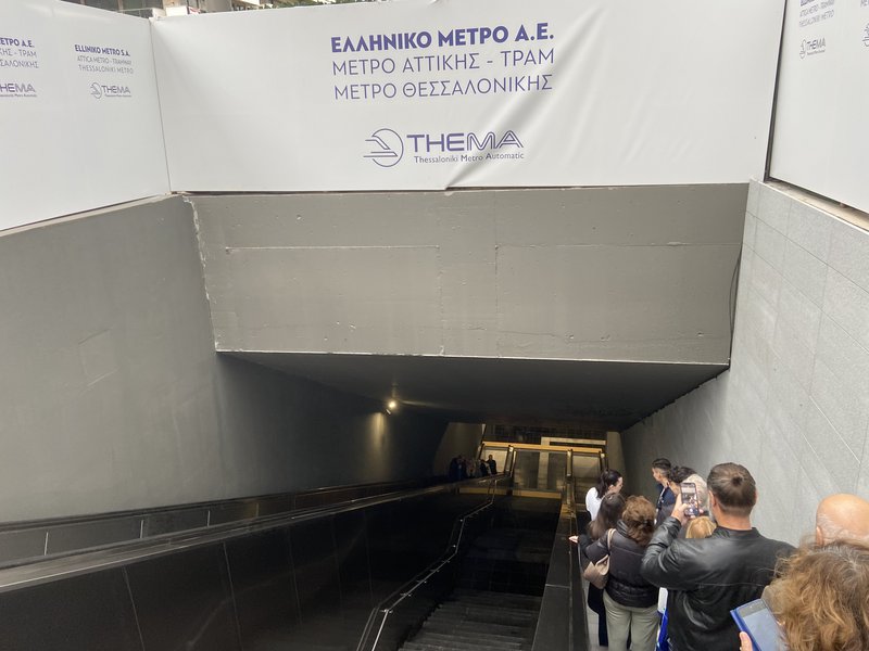 «Όπως θα είδατε επάνω, κατεβήκαμε την πιο μεγάλη σκάλα που υπάρχει στο μετρό Θεσσαλονίκης. Αυτό συμβαίνει επειδή ανάμεσα στην είσοδο του σταθμού, το επίπεδο του δρόμου δηλαδή, και το -1, υπάρχει ένα μεσοπάτωμα, στο οποίο υπάρχει ο κεντρικός αποχετευτικός αγωγός της πόλης. Η μεγαλύτερη δυσκολία που είχαμε, εκτός από τα αρχαία, ήταν στο να παρακάμψουμε αυτόν τον αγωγό, ο οποίος φυσικά δεν είναι ορατός στο κοινό,» απάντησε.