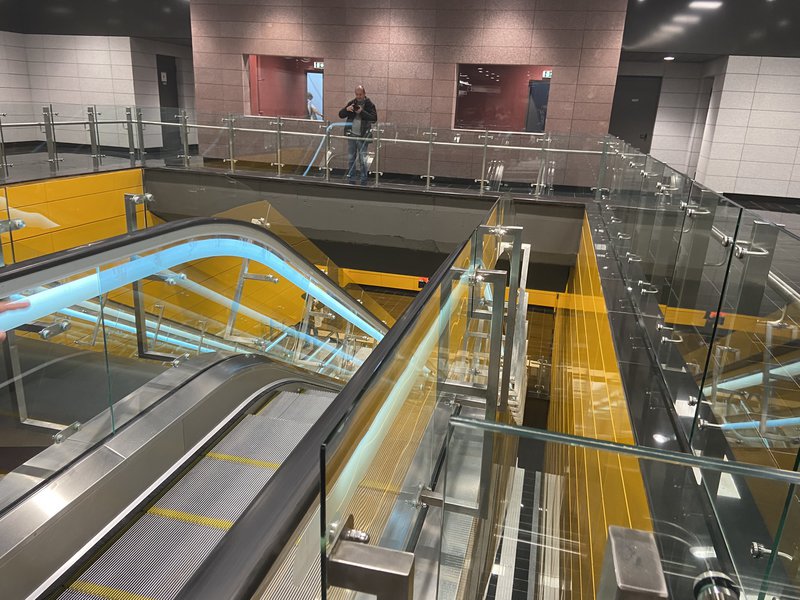 «Στο επίπεδο -2 είναι η «καρδιά» του μετρό. Εδώ βρίσκονται τα ηλεκτρικά και τεχνολογικά συστήματα του κάθε σταθμού. Ο κόσμος περνά από εδώ για να κατέβει στο -3, όπου είναι οι αποβάθρες,» εξήγησε.