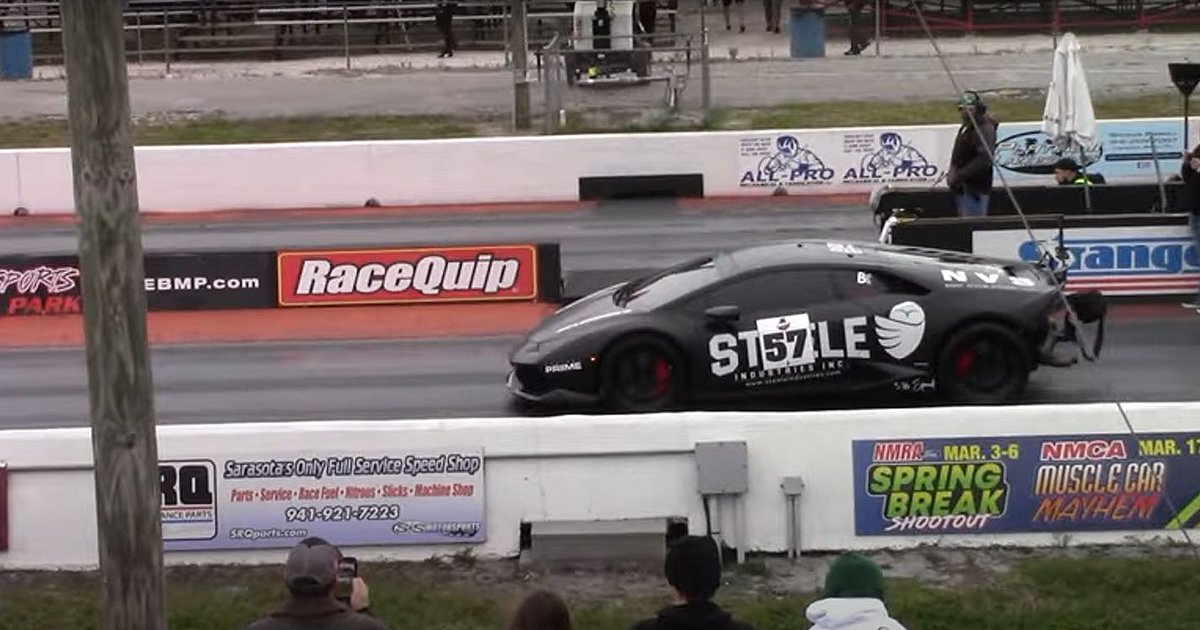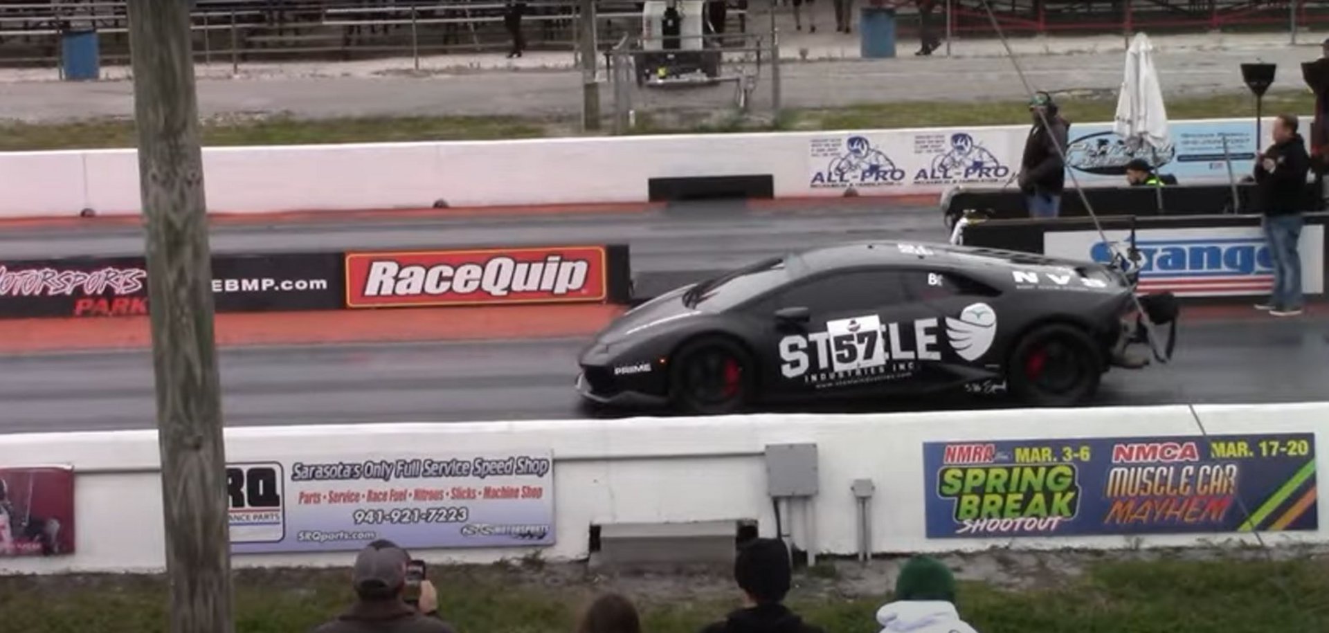 Στο τσιμεντένιο διαχωριστικό του dragstrip κατέληξε μια βελτιωμένη Lamborghini Huracan κατά τη διάρκεια των αγώνων GT-R World Cup που έλαβαν χώρα στη Φλόριντα. Η συγκεκριμένη διοργάνωση απευθύνεται κυρίως σε Nissan GT-R ωστόσο στο πλαίσιο των εκδηλώσεων αρκετά αυτοκίνητα διαφορετικής κατασκευής ρίχνονται στο 400άρι και δοκιμάζουν τη δύναμή τους.