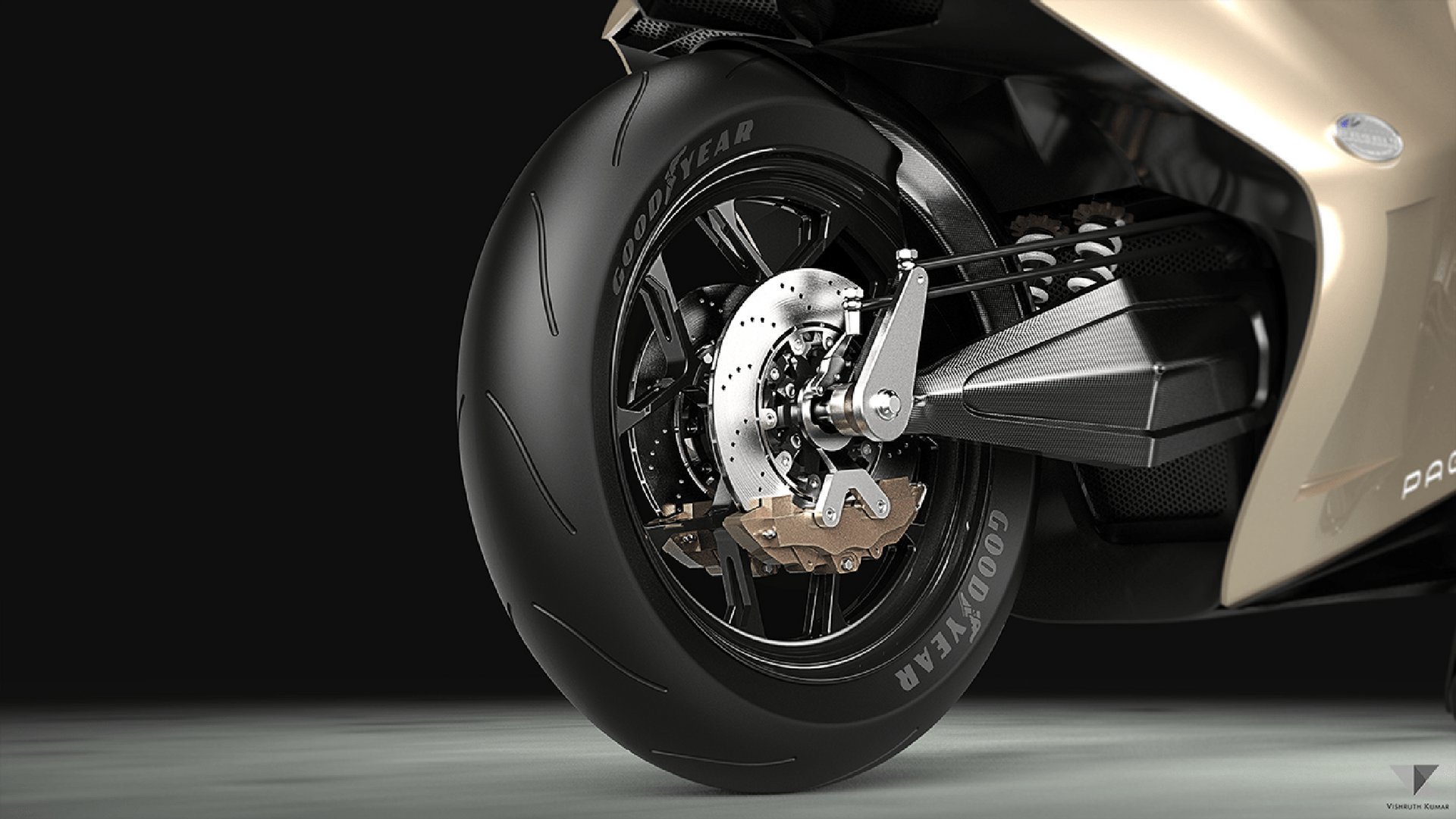 Ο Vishruth Kumar είναι σχεδιαστής από το Ahmedabad της Ινδίας και είναι λάτρης ακριβών και γρήγορων αντικειμένων. Με αυτά τα δύο στοιχεία δούλεψε την ιδέα μιας μοτοσυκλέτας η οποία δεν είναι απλά σπορ αλλά ξεφεύγει από τα σχεδιαστικά ειοθώτα του κόσμου των δύο τροχών, παίρνοντας στοιχεία από μοντέλα της Pagani. Λεπτομέρειες όπως τα εμπρός φωτιστικά ή η τριπλή εξάτμιση πίσω είναι δανεισμένες από την Huayra.