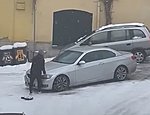 Ωστόσο τη στιγμή που ο οδηγός κινείται προς το αυτόματο μηχάνημα πληρωμής, αντιλαμβάνεται τι έχει συμβεί και χωρίς να το σκεφτεί ιδιαίτερα μπαίνει πίσω από το όχημα και προσπαθεί-ως άλλος SuperMan- να το σταματήσει.
