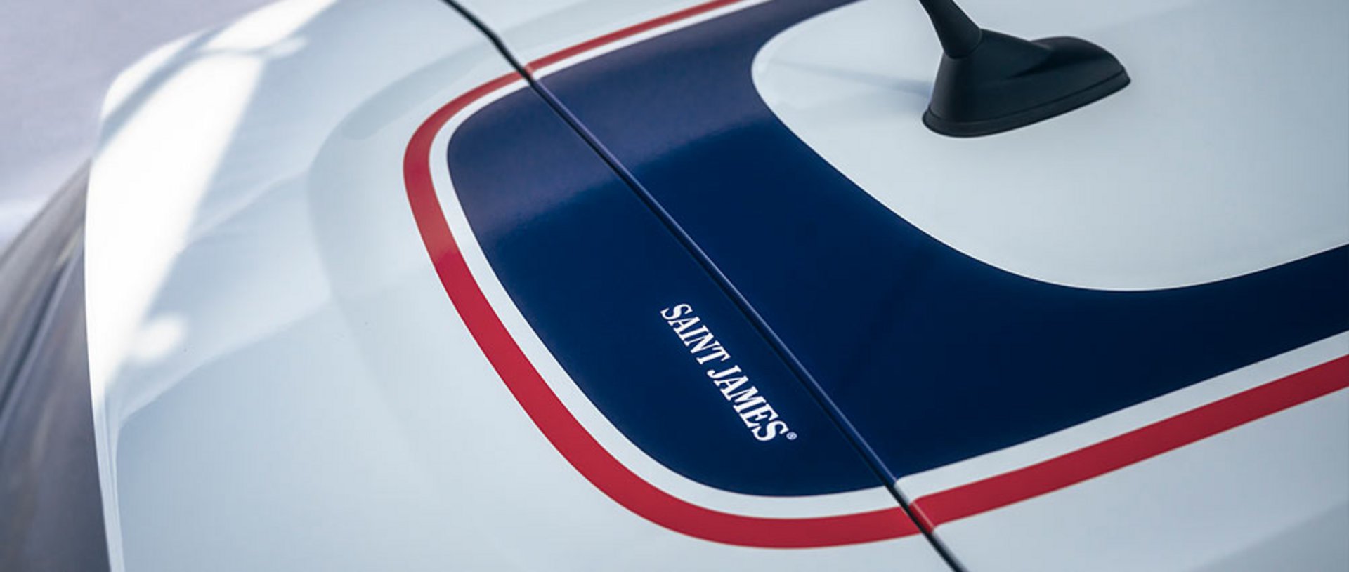 Η λευκή ραφή βρίσκεται παντού και στο ταμπλό και μαζί με το χρωμιωμένο περίγραμμα του επιλογέα ταχυτήτων, τονίζει τη φινέτσα του συνόλου. Το εσωτερικό διαθέτει επίσης διακοσμητικό μπλε και κόκκινο ιμάντα στις πόρτες με σήμανση Saint James στο πλαίσιο της πόρτας του οδηγού, καθώς και μια πλάκα κάτω από το λεβιέ ταχυτήτων με το λογότυπο Saint James.