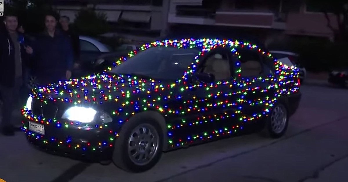 Σε αυτό το πλαίσιο ένας νεαρός οδηγός από τη Νέα Σμύρνη πήρε την απόφαση να αφιερώσει χρόνο μαζί με την παρέα του για να «ντύσει» με χριστουγεννιάτικα λαμπάκια την BMW του!