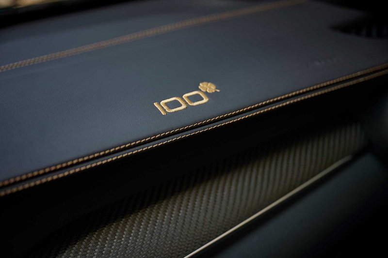 Η ίδια απόλυτη σπορ αίσθηση χαρακτηρίζει και το εσωτερικό των αυτοκινήτων με το συνδυασμό δέρματος και Alcantara και την εκτενή χρήση τμημάτων από ανθρακονήματα. Στο ταμπλό η επιγραφή «100» δίπλα στο χρυσό Quadrifoglio υπογράφει τη μοναδικότητα της έκδοσης. Ο οδηγός έχει στη διάθεση του το νέο, διαμορφώσιμο ψηφιακό πίνακα οργάνων 12,3’’, όπου σε σχέση με τις υπόλοιπες εκδόσεις των μοντέλων διαθέτει επιπλέον τη λειτουργία «Race» που προσφέρει εκτός των άλλων και «shift light» όταν ο οδηγός έχει επιλέξει τη χειροκίνητη λειτουργία στο αυτόματο κιβώτιο των 8 σχέσεων.