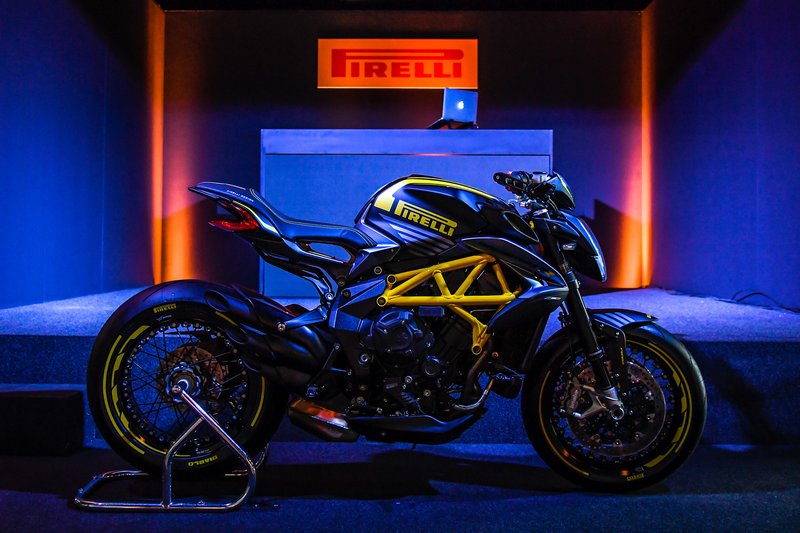 Για πρώτη φορά, η Pirelli Design εξατομικεύει όχι μόνο την αισθητική της μοτοσικλέτας, αλλά και τη λειτουργικότητά της. Τα προστατευτικά του ρεζερβουάρ καυσίμου και του φαίρινγκ κατασκευάστηκαν από ελαστικό, ειδικά σχεδιασμένο από το τμήμα έρευνας & εξέλιξης της Pirelli, για πρόσθετη αντοχή σε γρατζουνιές και εκδορές, καθώς και σε ατμοσφαιρική ή χημική φθορά, π.χ. εξ αιτίας της βενζίνης. Το διακριτικό γνώρισμα ότι είναι προϊόν συνεργασίας μεταξύ MV Agusta και Pirelli είναι τα ελαστικά Diablo Supercorsa SP, με προφίλ ασορτί χρωματικά με το σώμα της μοτοσικλέτας, σαν μία αποκλειστική, limited edition επιλογή.