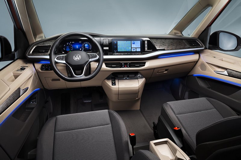 Όπως είναι επίσης πρώτη φορά που στο επιβατικό van της VW προστέθηκε μία γυάλινη πανοραμική οροφή, γεμίζοντας την καμπίνα με άπλετο φυσικό φως.