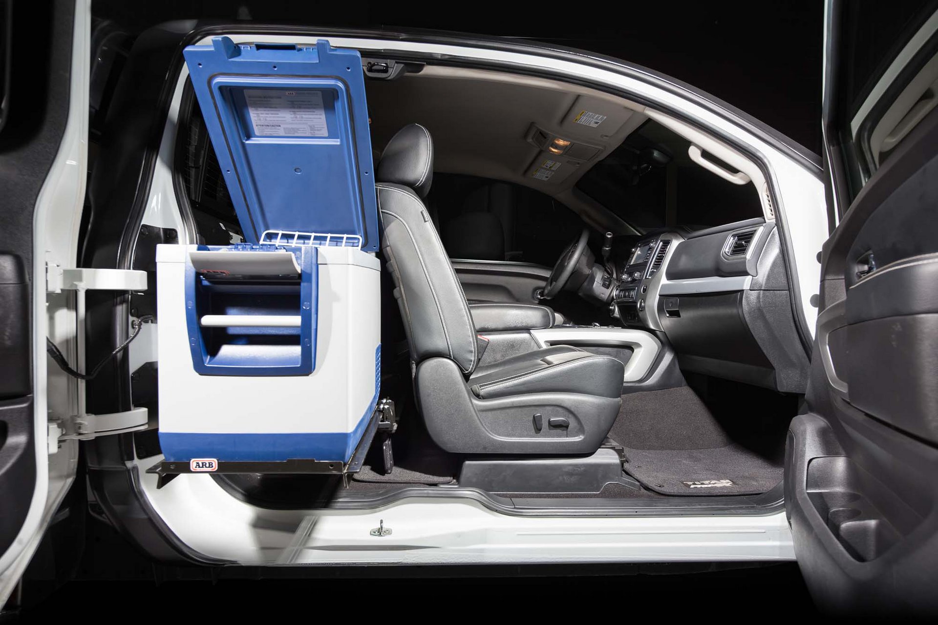 Εκμεταλλευόμενο το επίπεδο δάπεδο του TITAN στη δεύτερη σειρά της έκδοσης King Cab, ένας ψυγείο-καταψύκτης ARB με διαχωριστικό, βρίσκει την ιδανική θέση του ακριβώς στο σημείο των πίσω καθισμάτων, μαζί με ένα ειδικής κατασκευής ράφι μπαχαρικών.