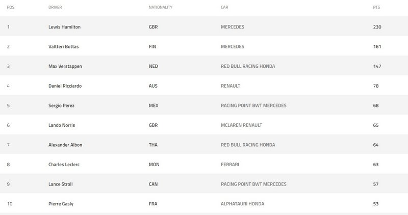 Παρακάτω μπορούμε να δούμε την κατάταξη του γερμανικού Grand Prix.