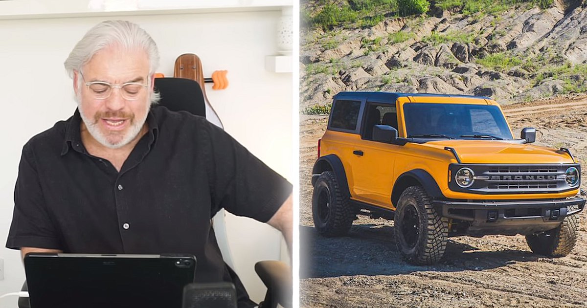 Το αυτοκίνητο με το οποίο καταπιάνεται σε αυτό το βίντεο είναι το νέο Ford Bronco, ένα σκληροτράχηλο off roader για την Αμερικάνικη αγορά. Και ο ίδιος δείχνει να εκτιμά τη δουλειά των συναδέλφων του. Σύμφωνα με τα λεγόμενά του, αποτελεί μία πολύ μεγάλη εξέλιξη, από το παλαιάς κοπής όχημα σε μία νέα, σύγχρονη μορφή. Ο ίδιος αποφεύγει να το χαρακτηρίσει ρετρό, παρότι θεωρεί ότι όλη αυτή η σύγχρονη προσέγγιση σέβεται απόλυτα τη σχεδιαστική ταυτότητα του αρχικού μοντέλου.