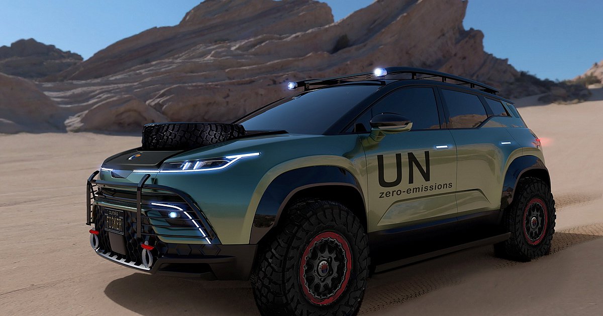 Τα οποία είναι αρκετά για να μεταμορφώσουν το ηλεκτρικό Ocean σε ένα μαχητή της ερήμου εφοδιασμένο με φαρδύτερα εκτός δρόμου λάστιχα, προστατευτικές ποδιές και πλαστικά, σχάρα οροφής με προβολάκια κ.α. Κάτι που ξενίζει είναι η θέση της έξτρα ρεζέρβας στο καπό. Όχι επειδή δεν υπάρχει κάτι κάτω από αυτό, αλλά για λόγους ασφαλείας μιας και περιορίζει το οπτικό πεδίο του οδηγού.