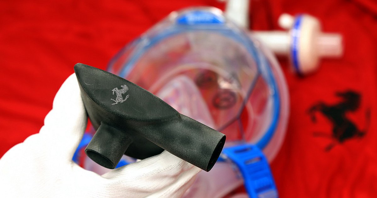 H οποία κατασκευάζει στο εργοστάσιό της στο Maranello βαλβίδες για αναπνευστήρες και εξαρτήματα για μάσκες προστασίας. Τα εξαρτήματα αυτάς όπως και οι βαλβίδες είναι από θερμοπλαστικό υλικό και κατασκευάζονται στο τμήμα όπου συνήθως η Ferrari φτιάχνει τα πρωτότυπά της με τη χρήση προηγμένης τεχνολογίας.