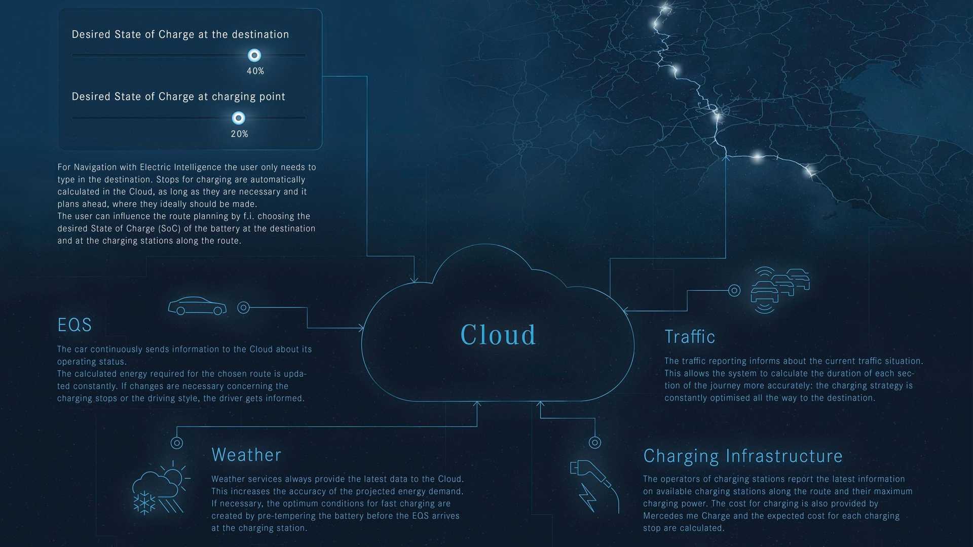 Μία από τις πιο σημαντικές δυνατότητες της Mercedes-Benz EQS θα είναι η πλοήγηση βάσει των στοιχείων που θα προσφέρει το σύστημα κίνησης του αυτοκινήτου.