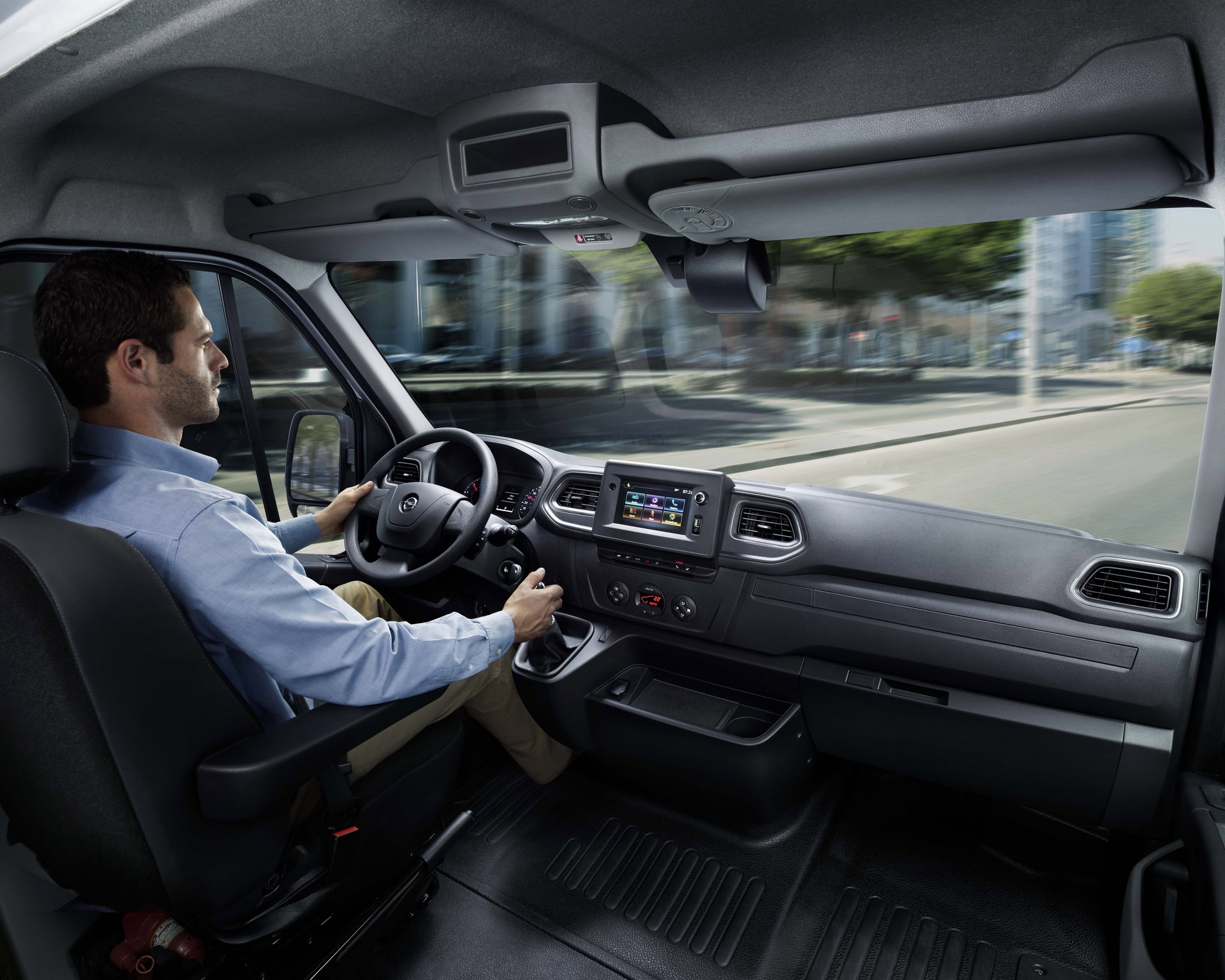 Το νέο Movano προσφέρει έναν άνετο και συνδεδεμένο χώρο εργασίας, με αναπαυτικά καθίσματα για τον οδηγό και το συνοδηγό και 22 προαιρετικούς αποθηκευτικούς χώρους που προσθέτουν συνολικά 104 λίτρα για την αποθήκευση αντικειμένων. Ιδιαίτερα πρακτικό είναι το ντουλαπάκι FlexTray στην πλευρά του συνοδηγού, που ανοίγει προς τα έξω σαν συρτάρι και έχει χωρητικότητα 10,5 L. Το Navi 50 IntelliLink Pro βρίσκεται στην κορυφή της λίστας infotainment. Το σύστημα είναι συμβατό με Apple CarPlay και Android Auto1 και προσφέρει εξαιρετική συνδεσιμότητα. Διαθέτει έγχρωμη οθόνη αφής capacitive 7,0”, εξαιρετικά εύχρηστη και λειτουργική. Smartphones συνδέονται μέσω Bluetooth® ή USB. Η ασύρματη φόρτιση είναι επίσης νέο χαρακτηριστικό στο Movano.
